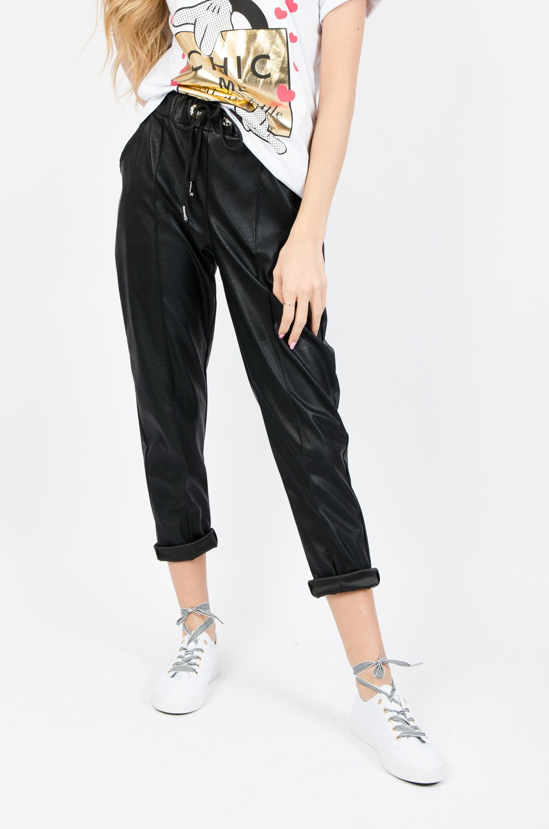 CZARNE WOSKOWANE SPODNIE Z WYSOKIM STANEM