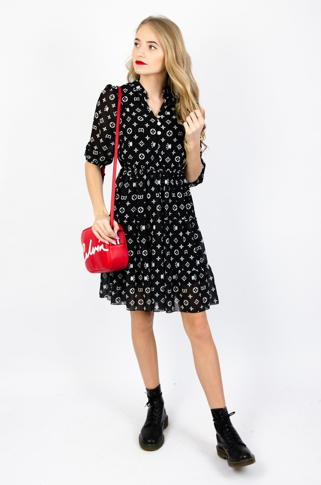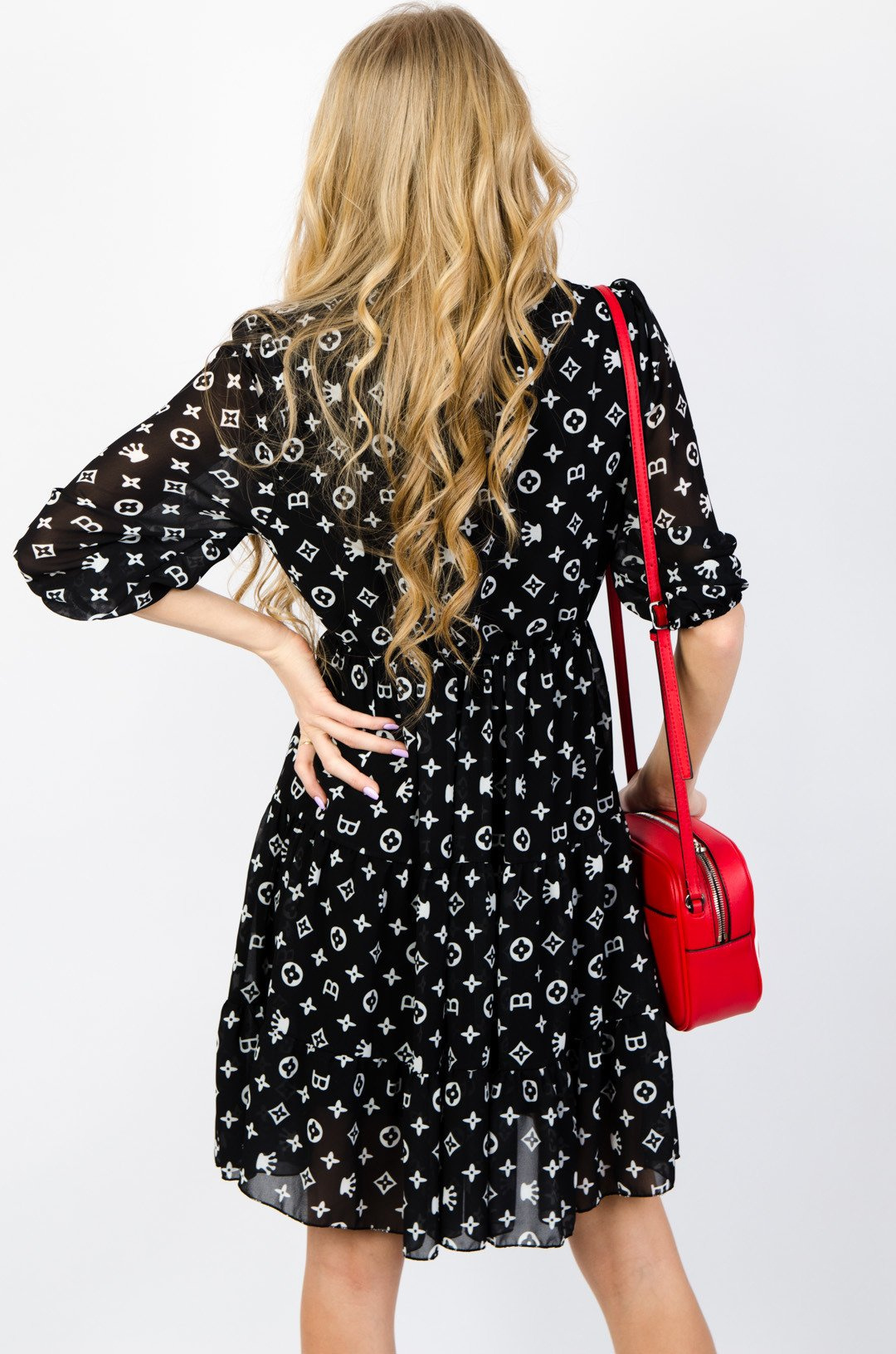 CZARNA WARSTWOWA SUKIENKA WE WZORY