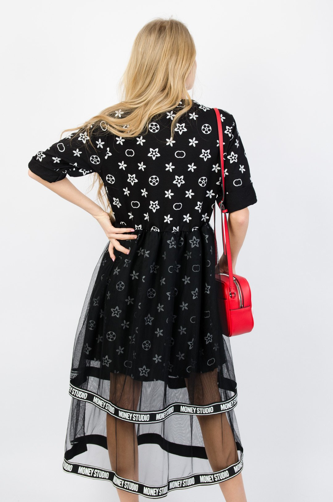 CZARNA SUKIENKA DZIANINOWA Z TIULEM -