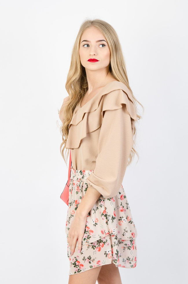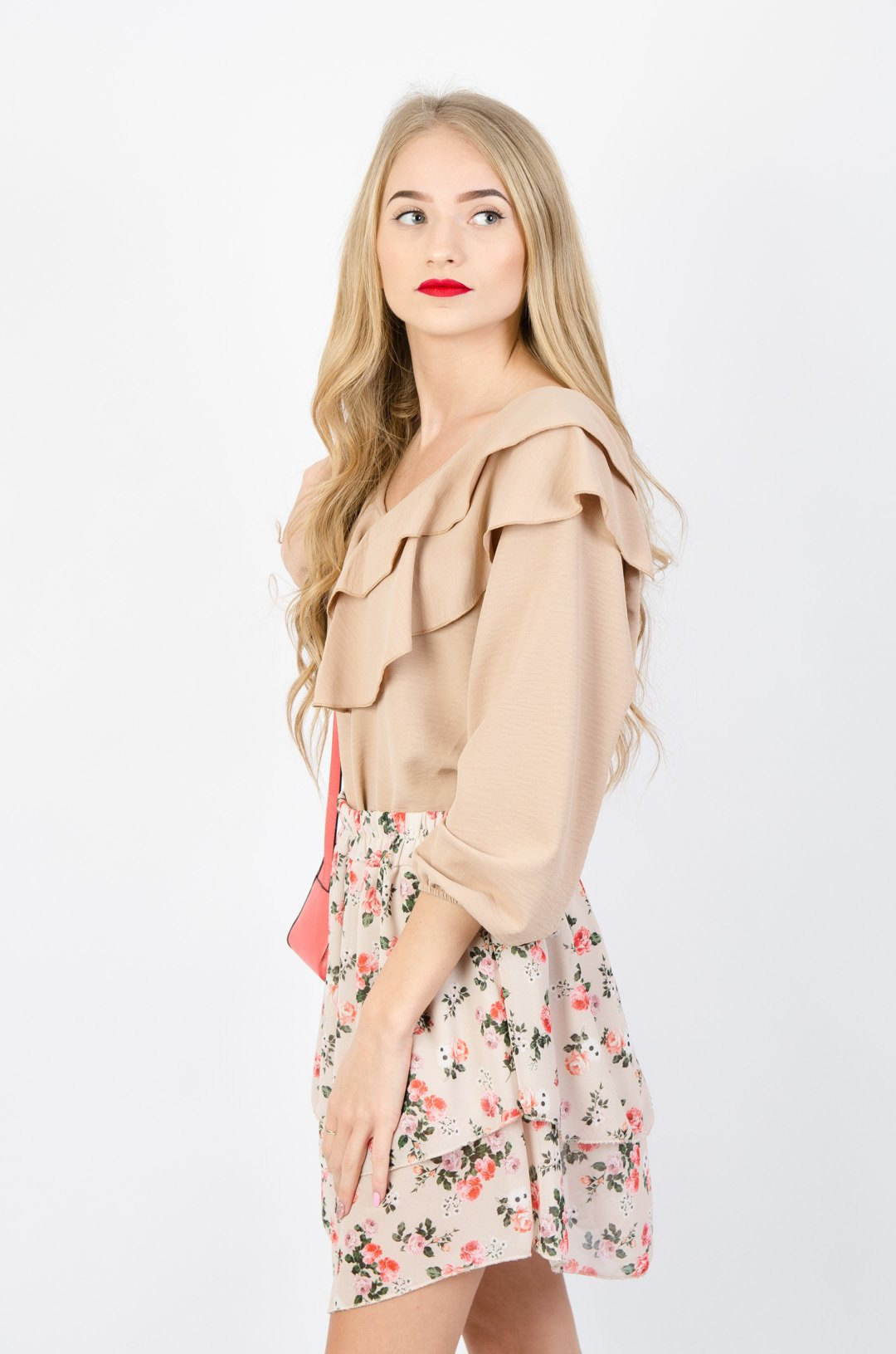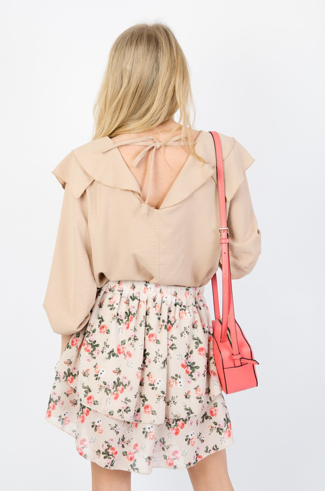 BEŻOWA BLUZKA Z KREPY Z WYCIĘCIEM NA PLECACH