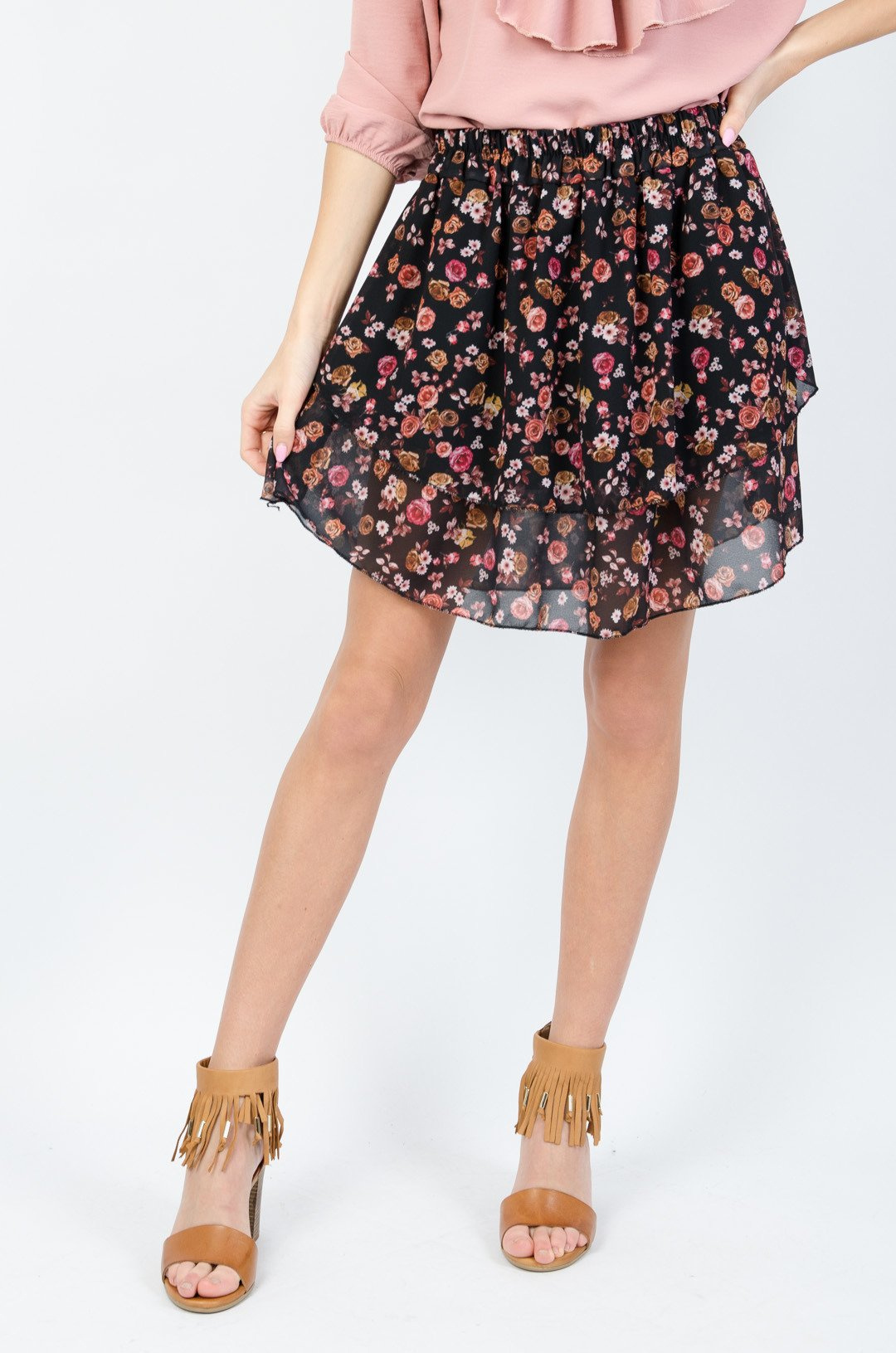 CZARNA SPÓDNICA ROZKLOSZOWANA W KWIATY