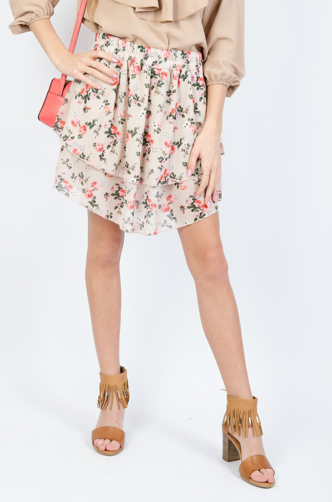 BEŻOWA SPÓDNICA ROZKLOSZOWANA W KWIATY