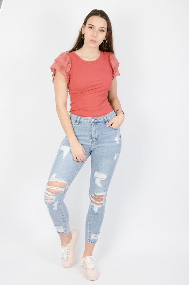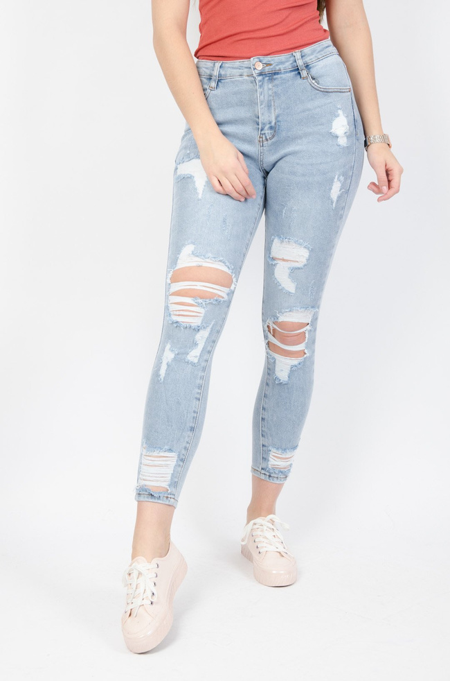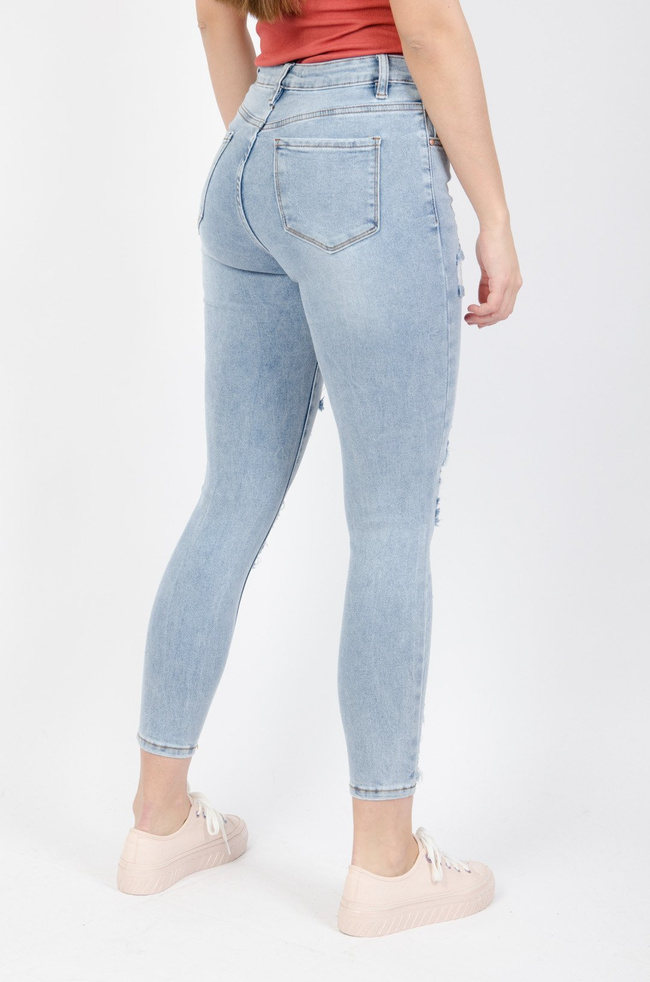 Jasne spodnie jeansowe z przetarciami-wysoki stan