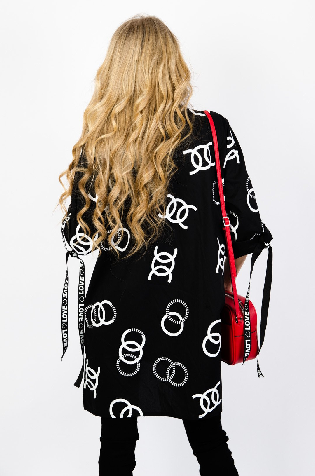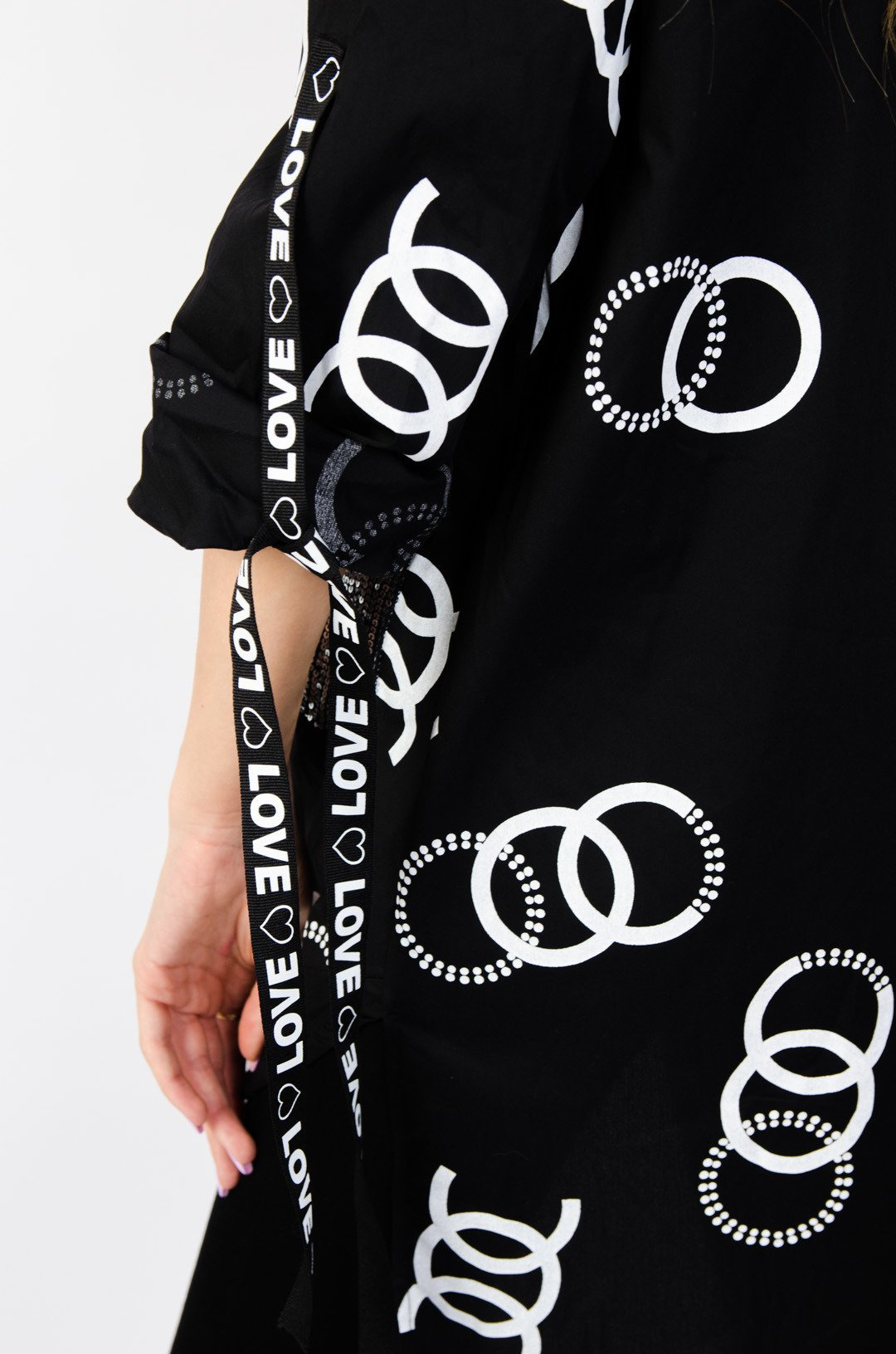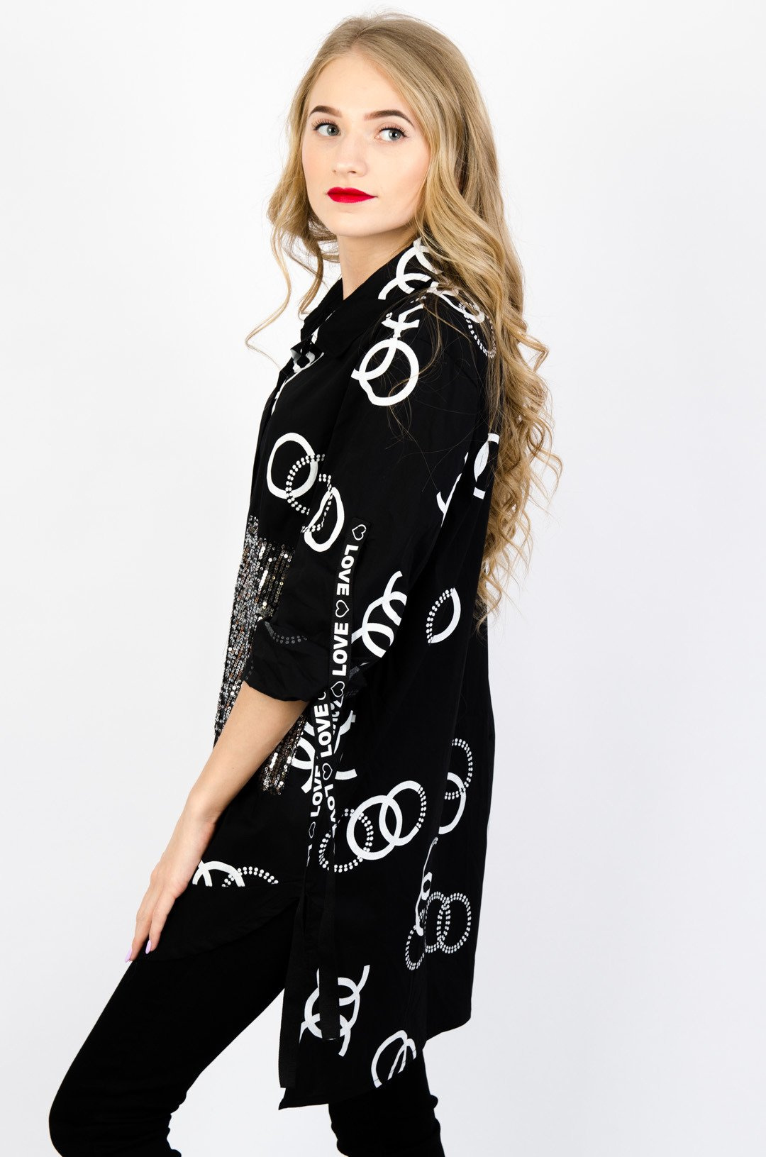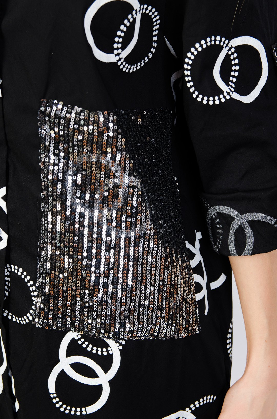 Czarna koszula z wzorem cc oraz cekinową kieszenią