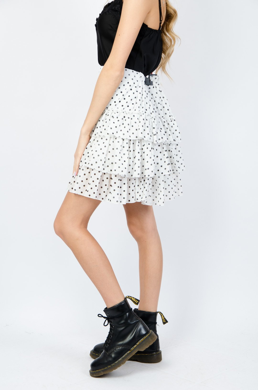 BIAŁA WARSTWOWA SPÓDNICA W KROPKI
