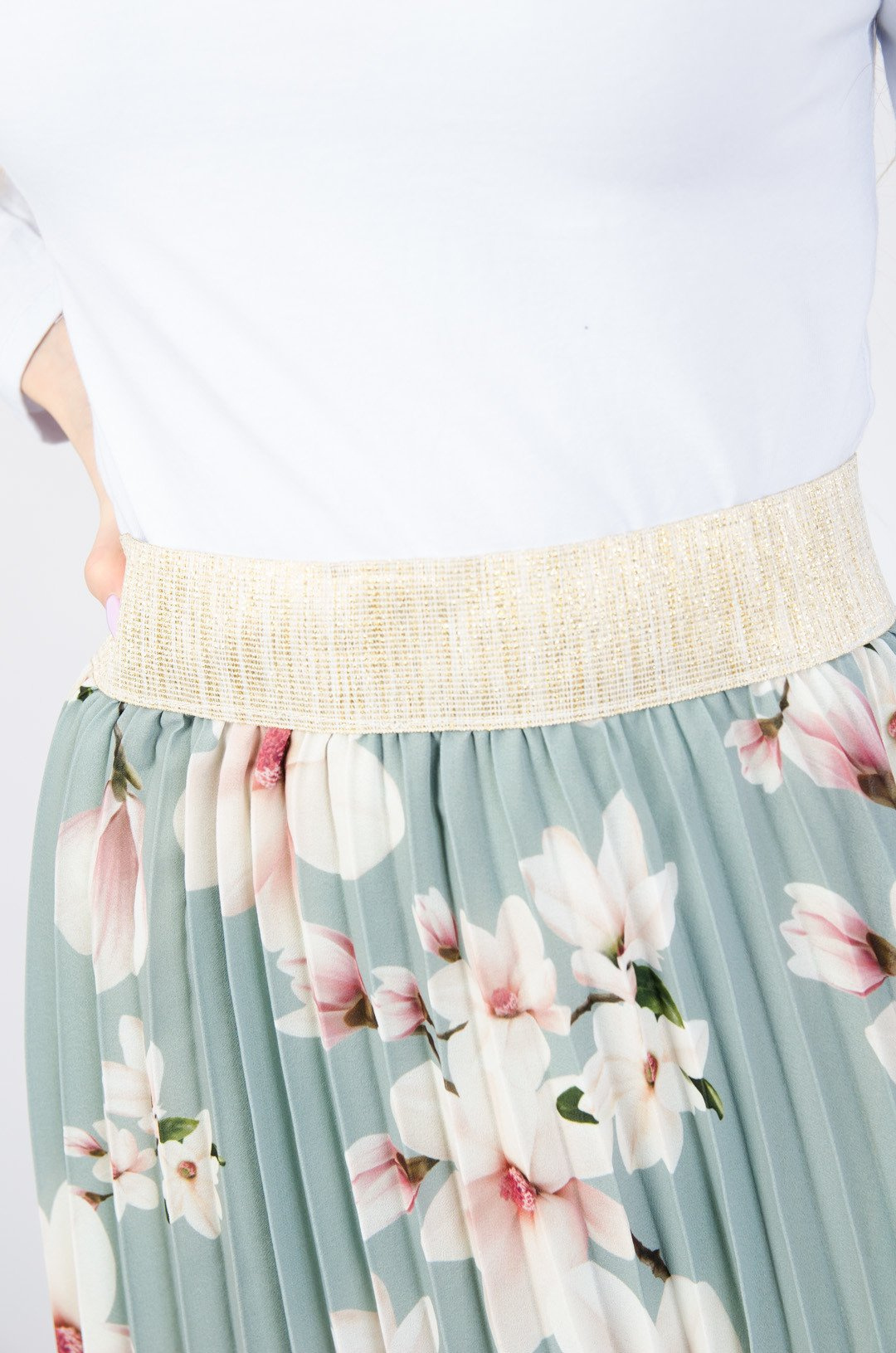 PLISOWANA SPÓDNICA W KWIATY W KOLORZE ZIELONYM
