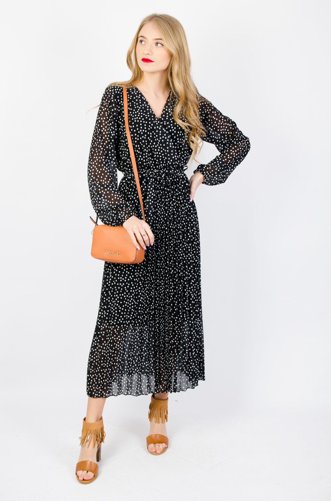 SZYFONOWA SUKIENKA W KROPKI Z PLISOWANYM DOŁEM -
