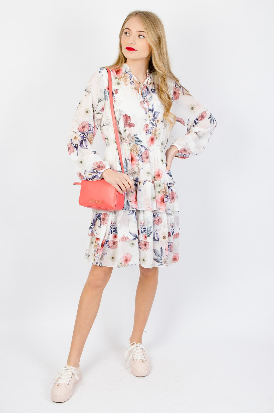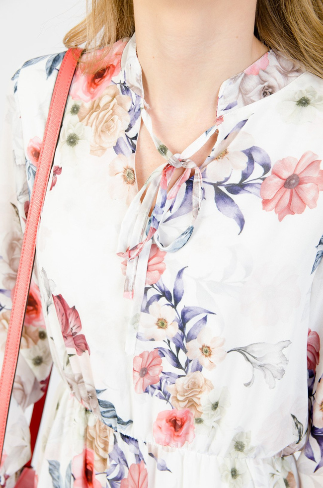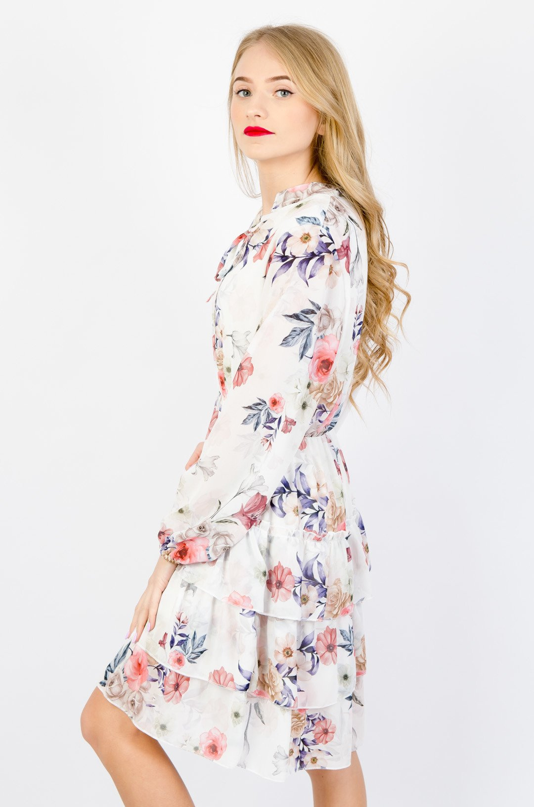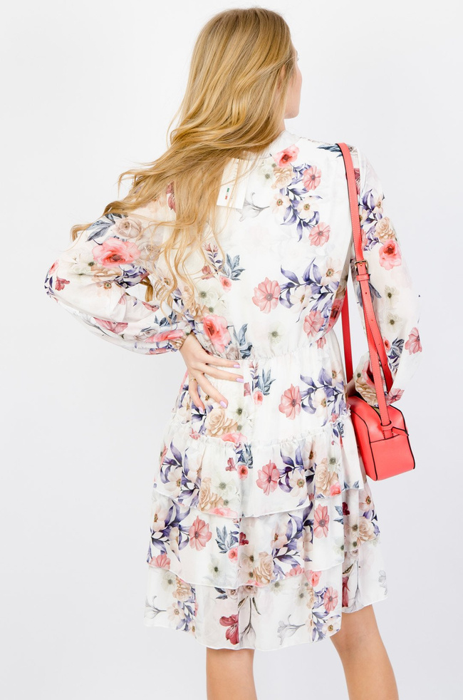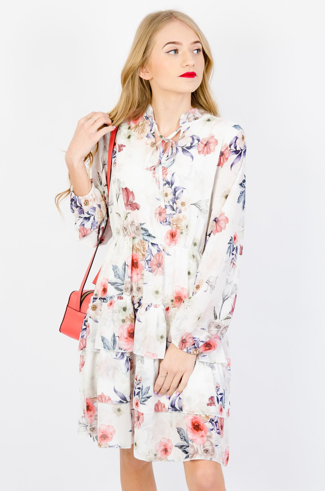 BIAŁA WARSTWOWA SUKIENKA W KWIATY