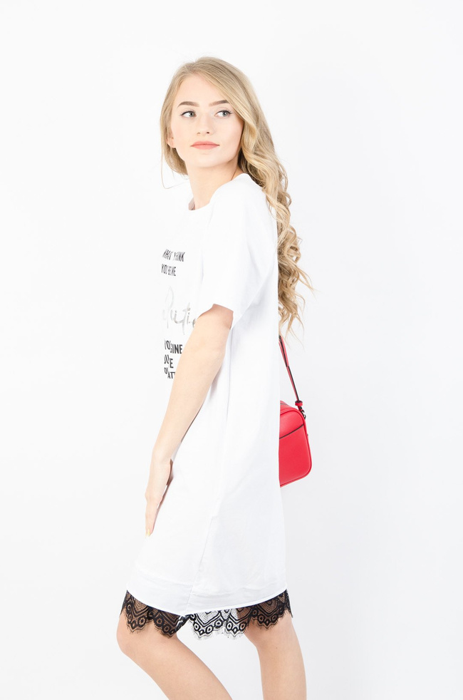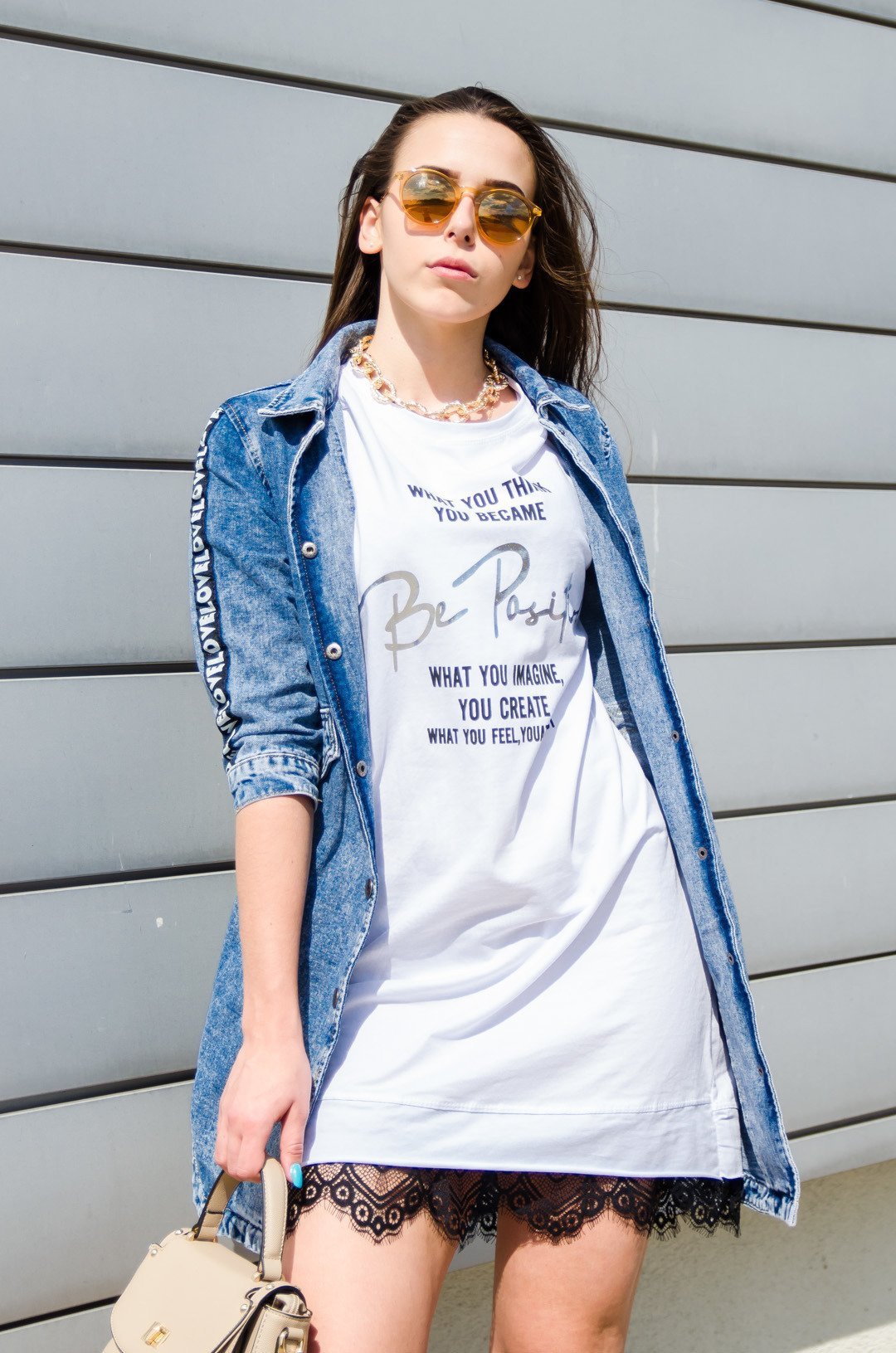 BIAŁA BAWEŁNIANA SUKIENKA WYKOŃCZONA KORONKĄ