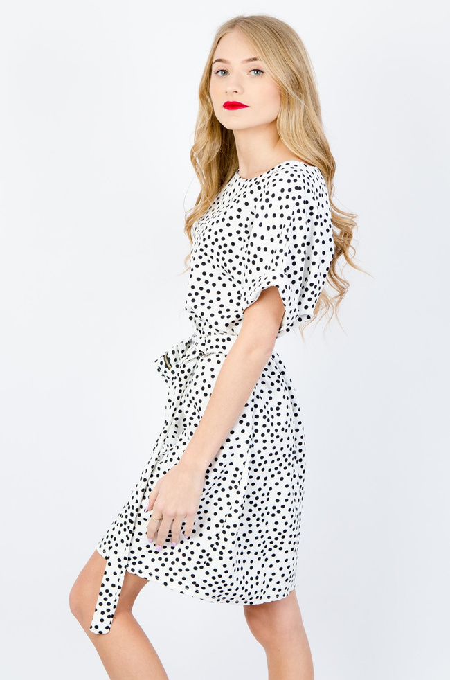 BIAŁA SUKIENKA W KROPKI Z NERKĄ