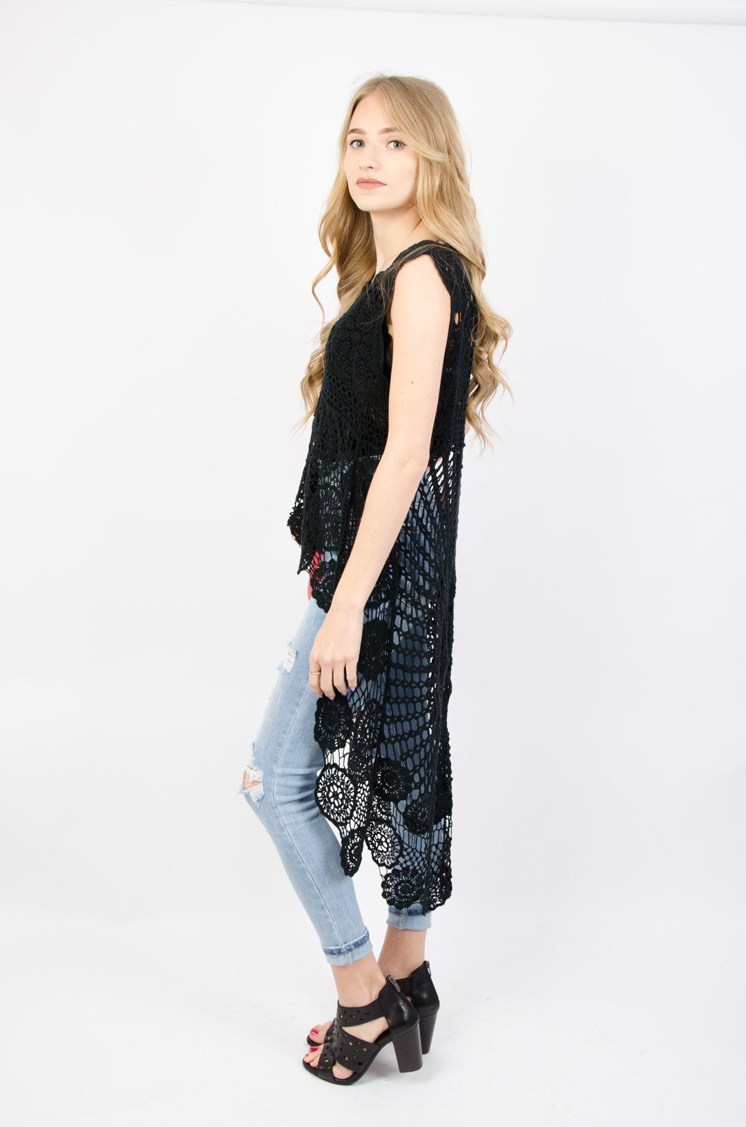 Czarna ażurowa tunika z dłuższym tyłem