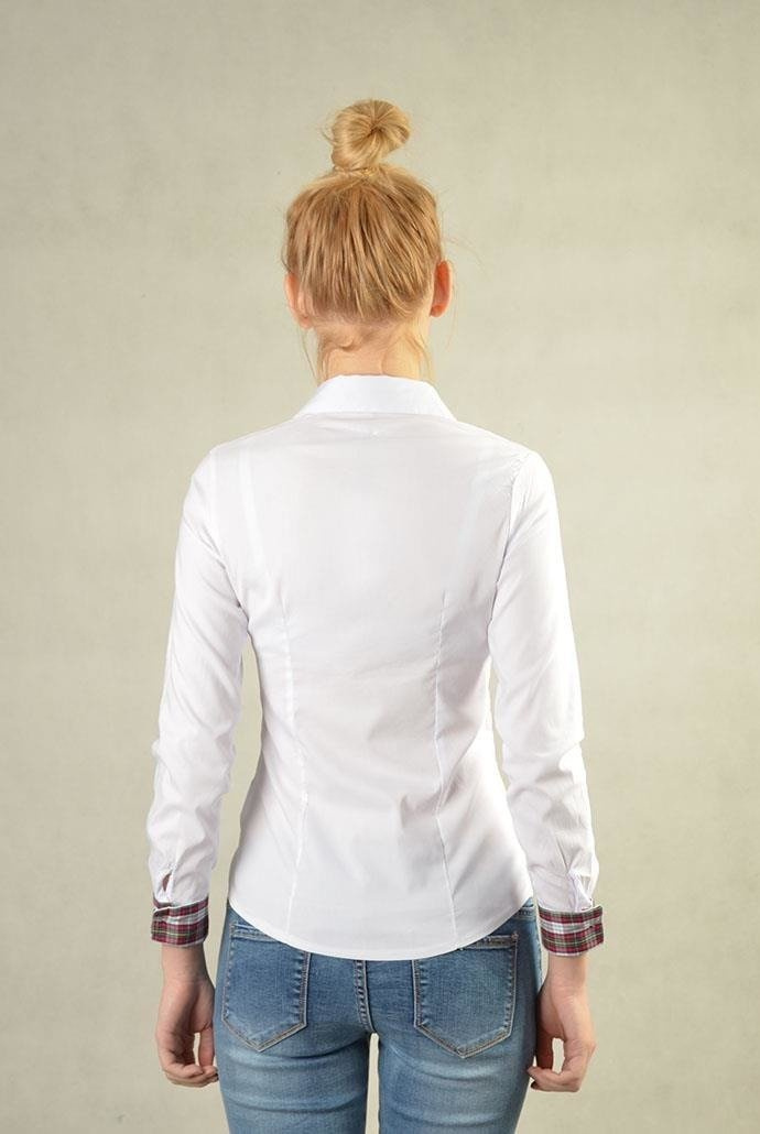 Elegancka koszula, zapinana na guziczki. Mankiety w kratę.