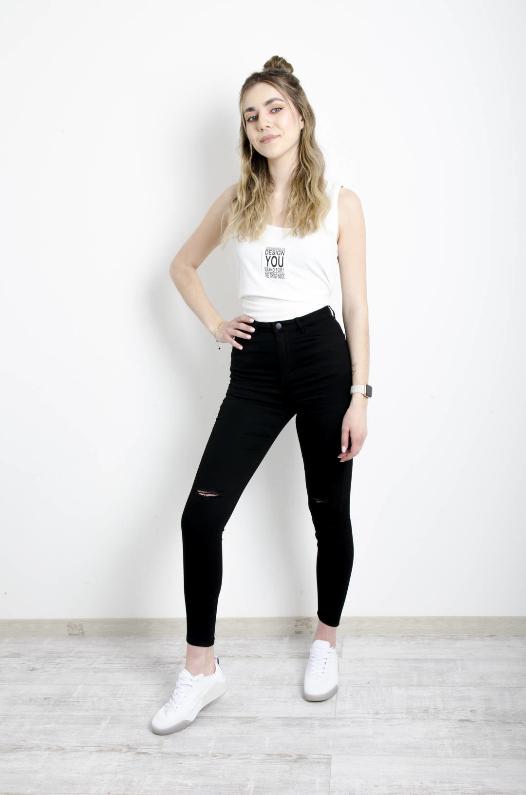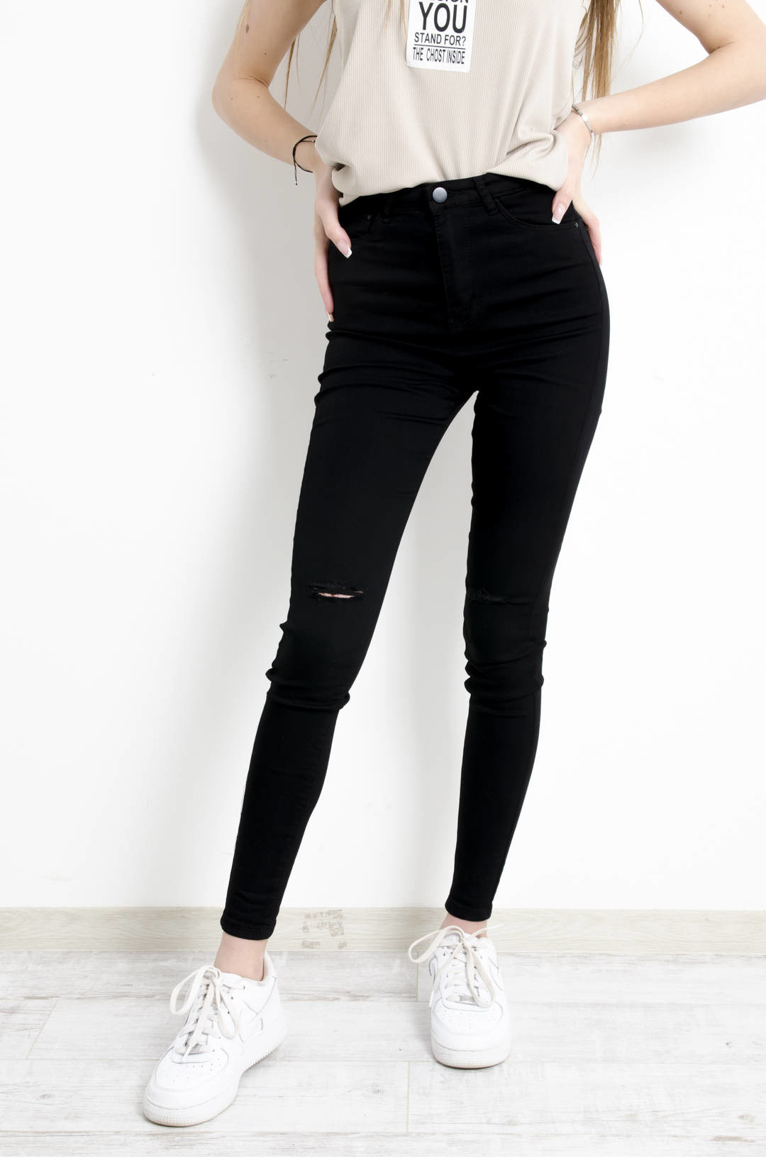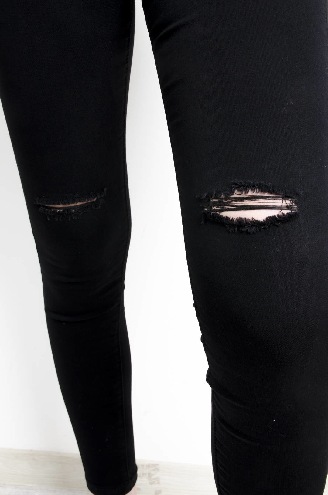 CZARNE SPODNIE SKINNY Z WYSOKIM STANEM- ROZCIĘCIA NA KOLANACH