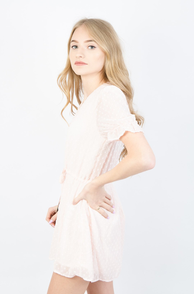 RÓŻOWY SZYFONOWY KOMBINEZON ZE ZDOBIENIEM