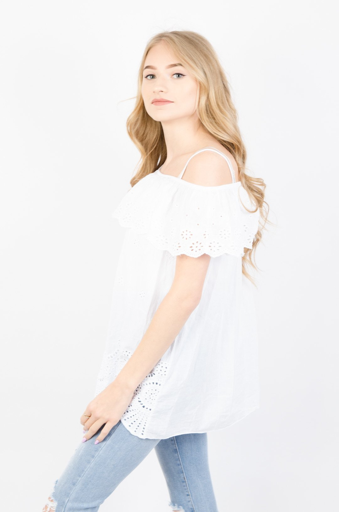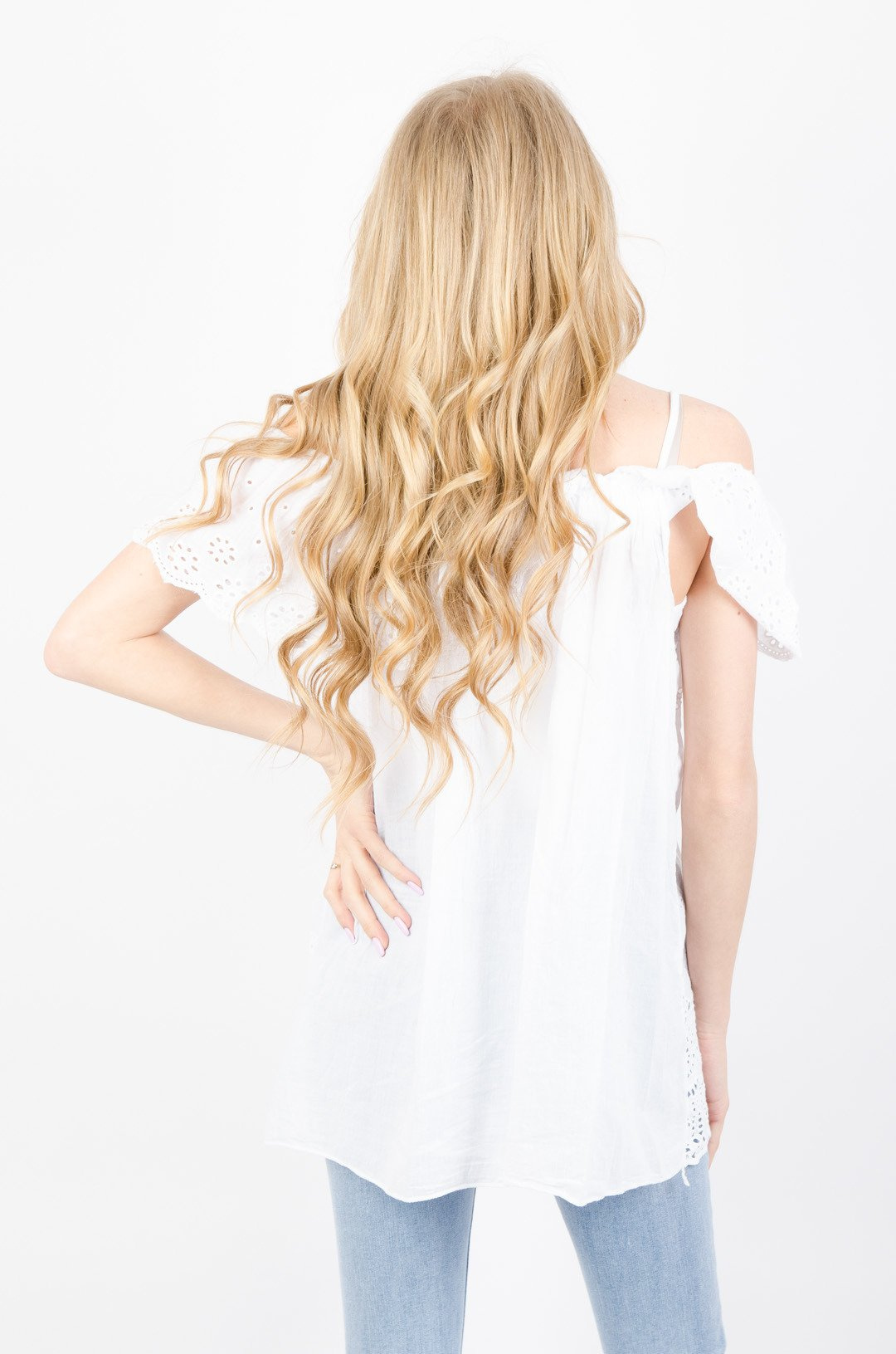 Biała bluzka hiszpanka z ażurowymi wstawkami
