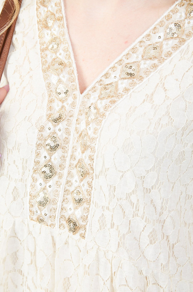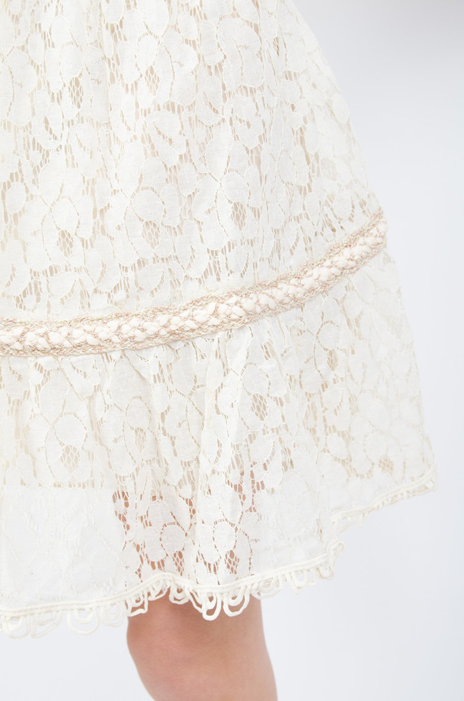 Beżowa koronkowa sukienka ze złotymi wstawkami