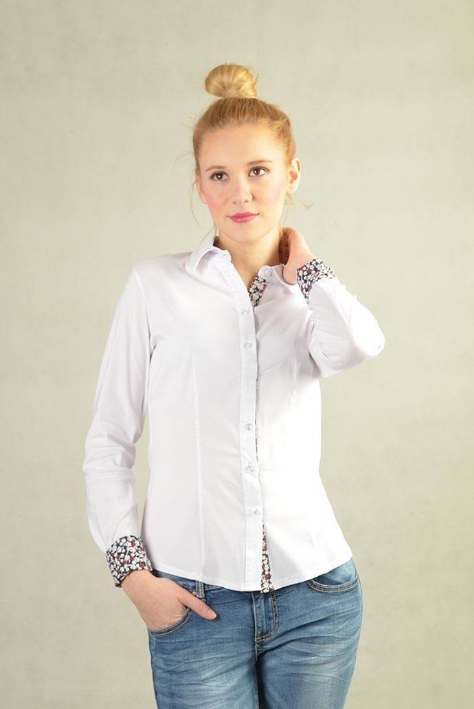 Elegancka koszula, zapinana na guziczki. Mankiety w kwiaty.