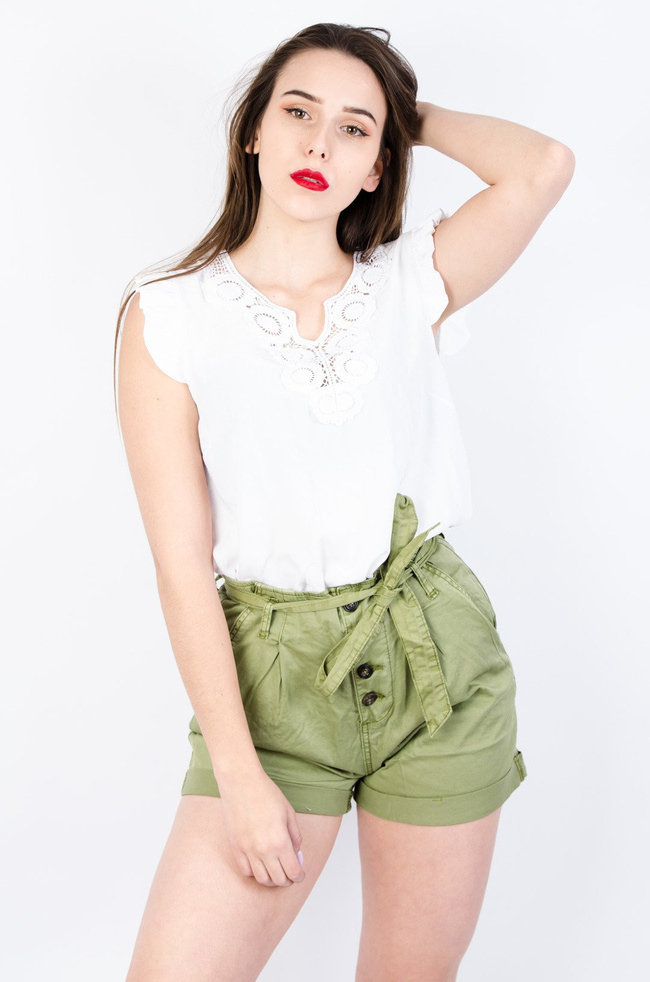 BIAŁA BLUZKA Z AŻUROWYMI WSTAWKAMI