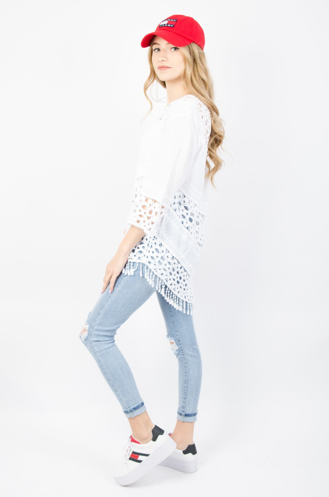 BIAŁA BLUZKA Z AŻUROWYMI WSTAWKAMI