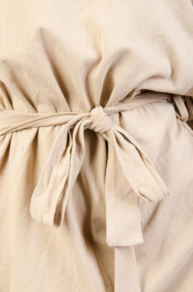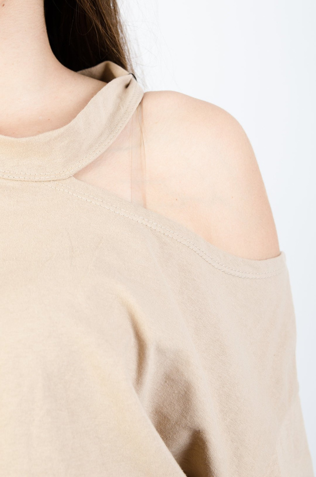BEŻOWA BAWEŁNIANA SUKIENKA W WYCIĘCIEM NA RAMIENIU