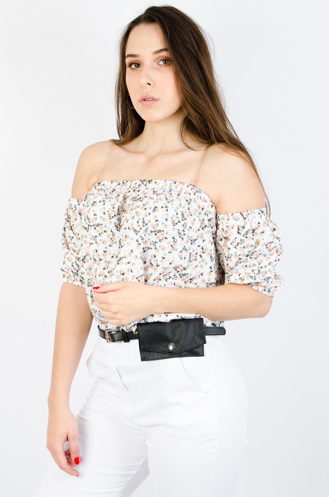 BIAŁA BLUZKA HISZPANKA W DROBNE KWIATY