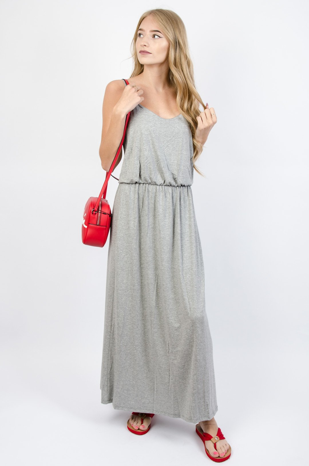 DŁUGA DZIANINOWA SUKIENKA MAXI - SZARA