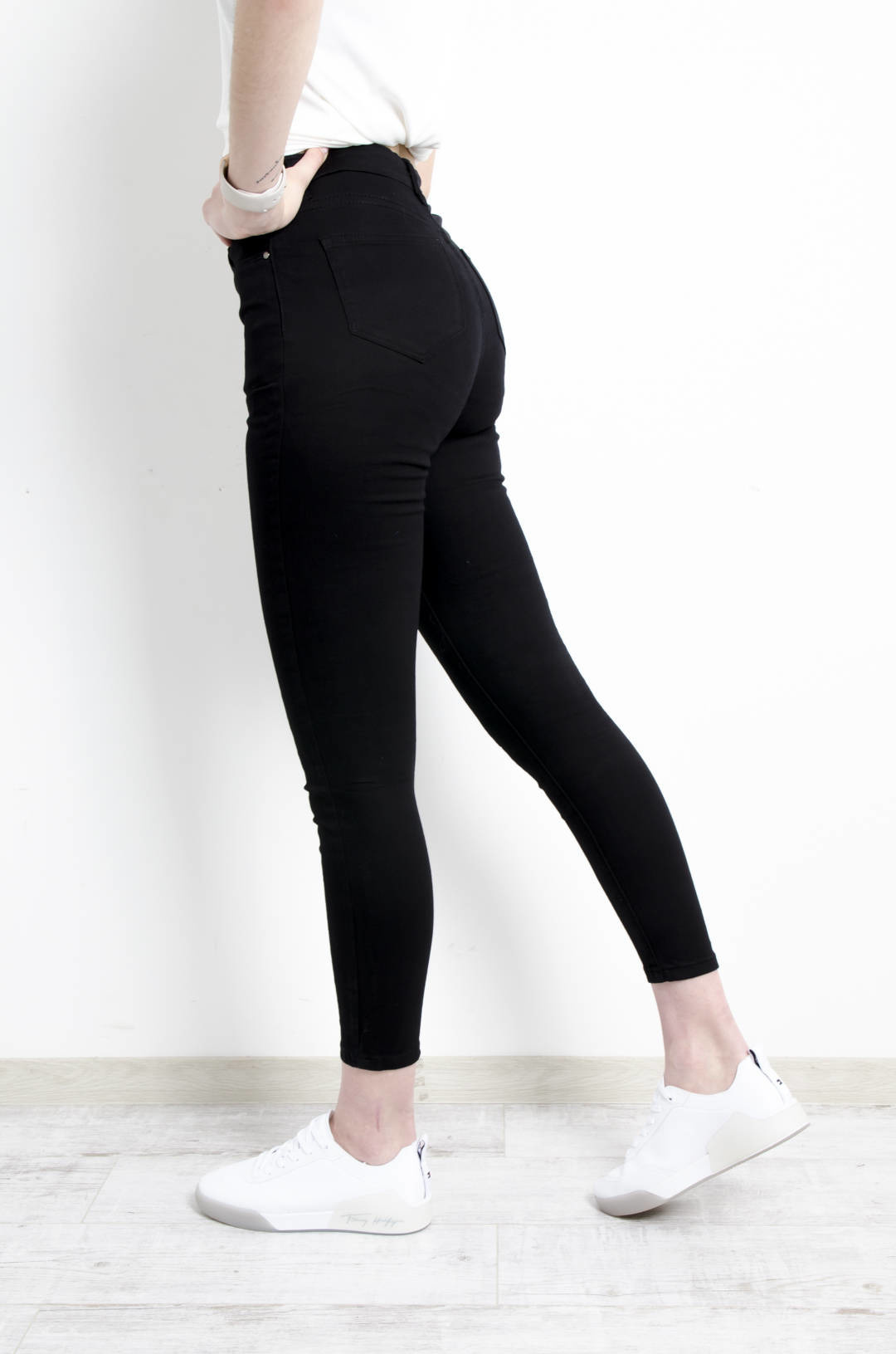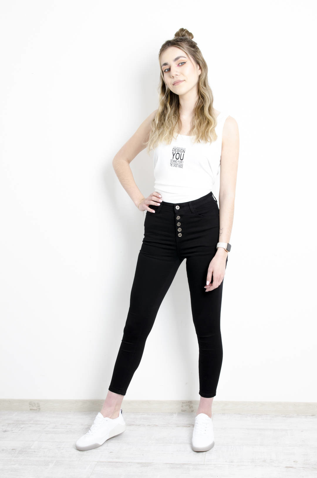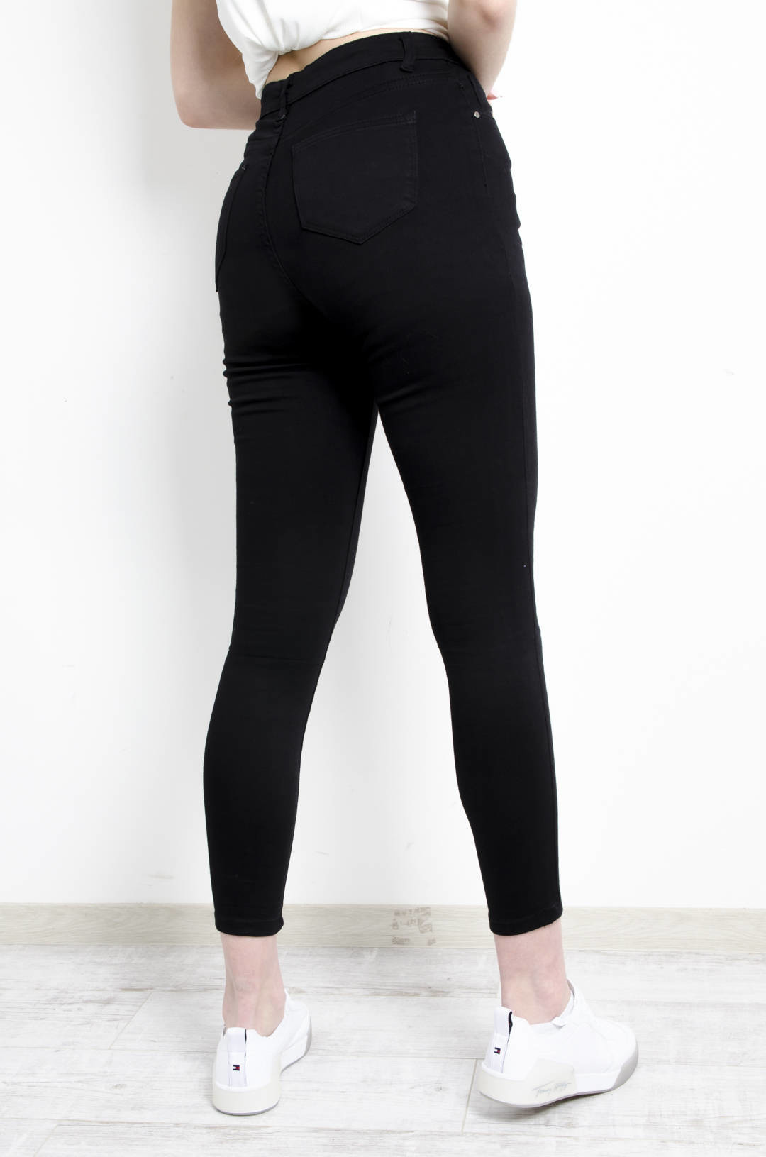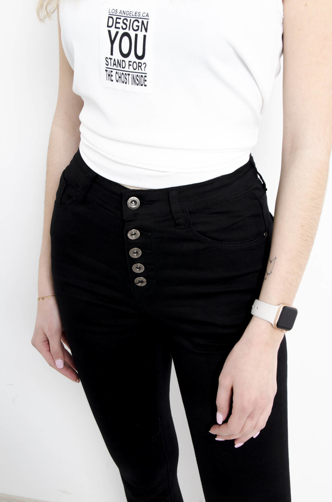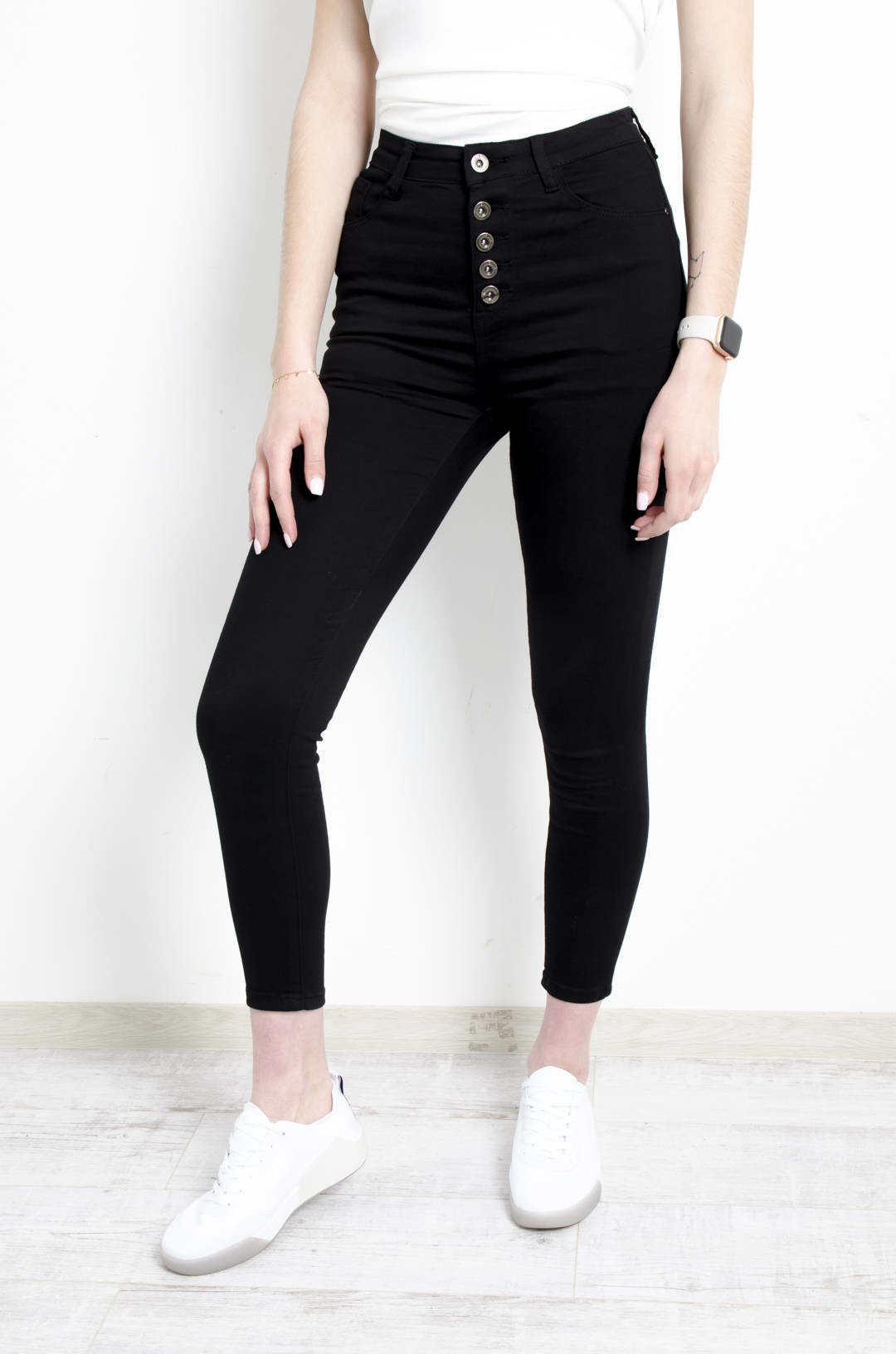 CZARNE SPODNIE SKINNY Z GUZIKAMI - WYSOKI STAN