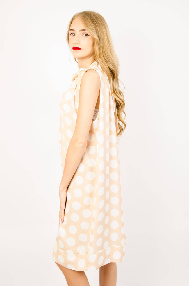 BEŻOWA SUKIENKA W GROCHY NA GRUBYCH RAMIĄCZKACH