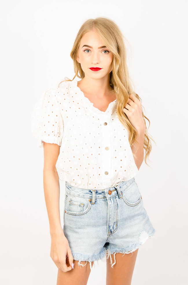 BIAŁA AŻUROWA BLUZKA ZAPINANA NA GUZIKI