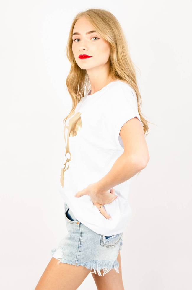 BAŁY T-SHIRT ZE ZŁOTYM NADRUKIEM