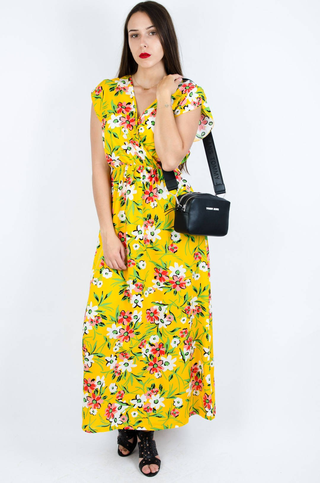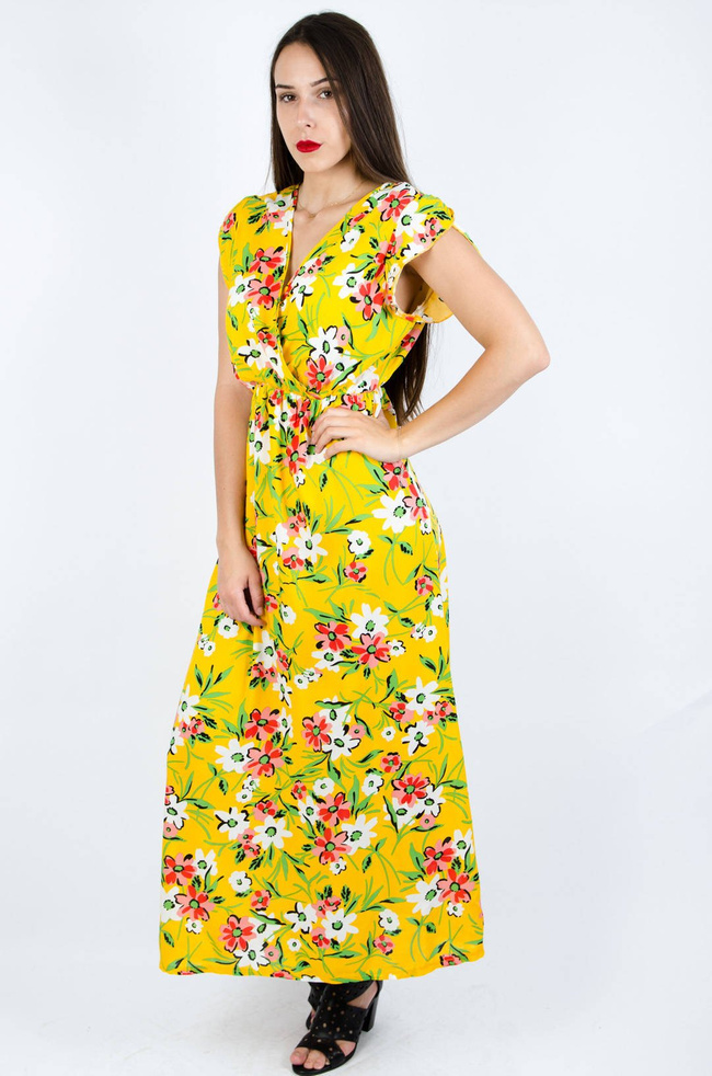 ŻÓŁTA SUKIENKA MAXI Z KOPERTOWYM DEKOLTEM
