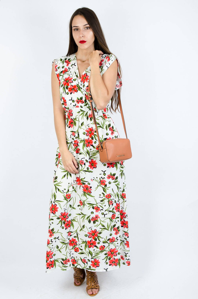 BIAŁA SUKIENKA MAXI Z KOPERTOWYM DEKOLTEM