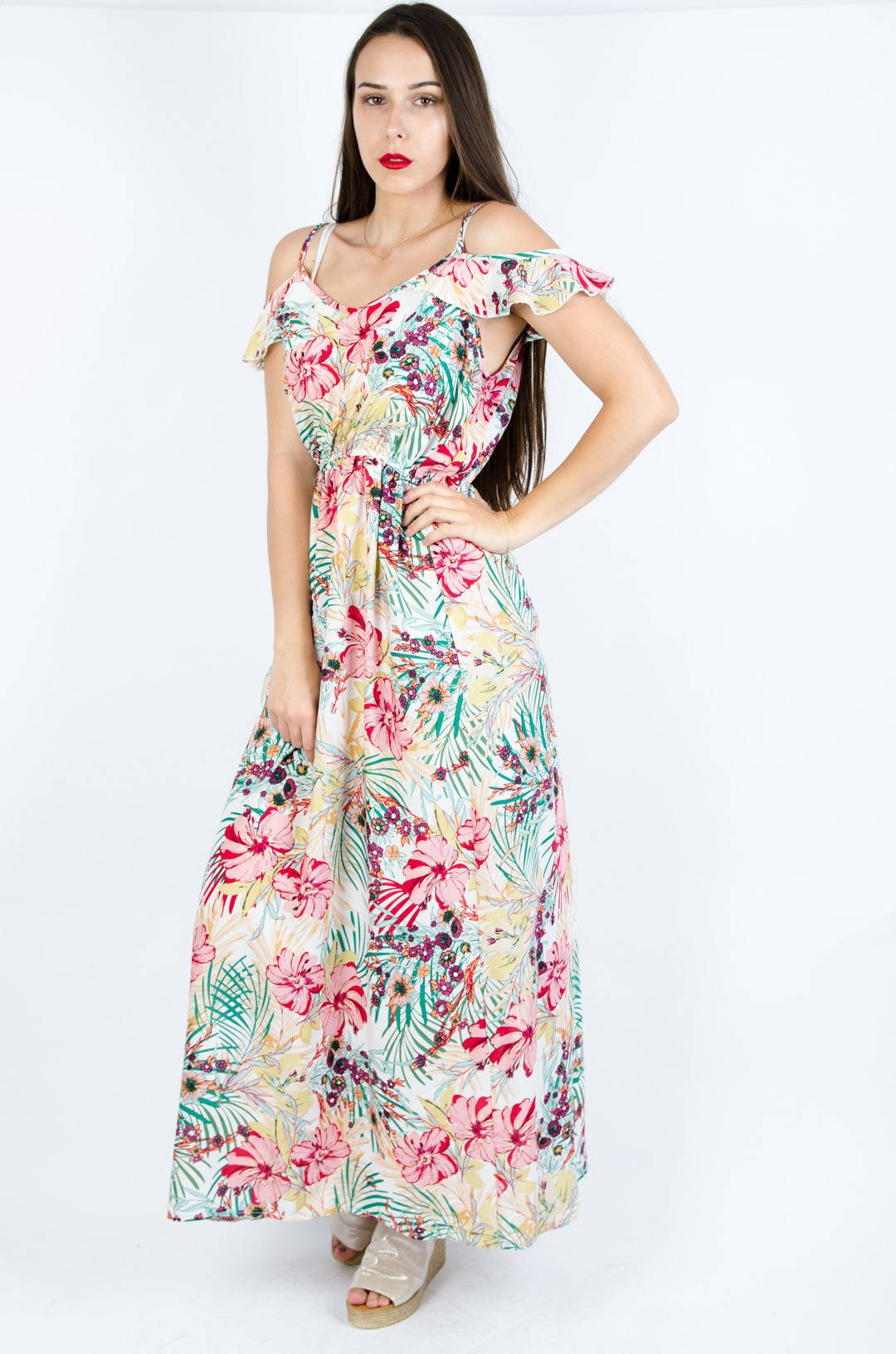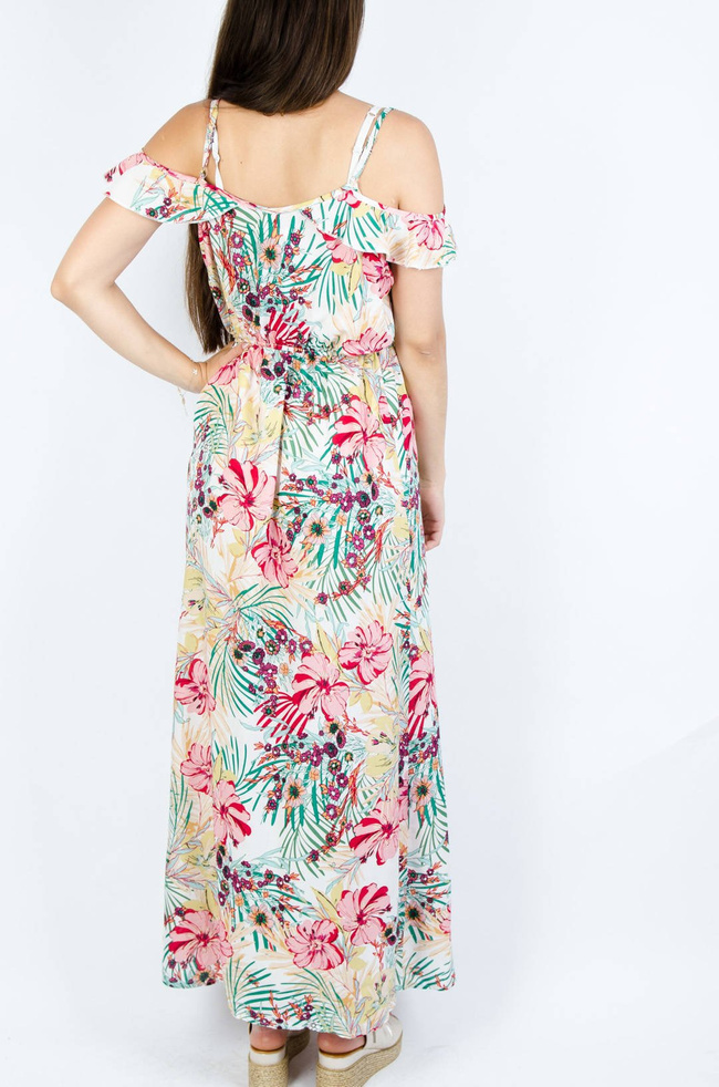 BIAŁA SUKIENKA MAXI Z MOTYWEM KWIATOWYM