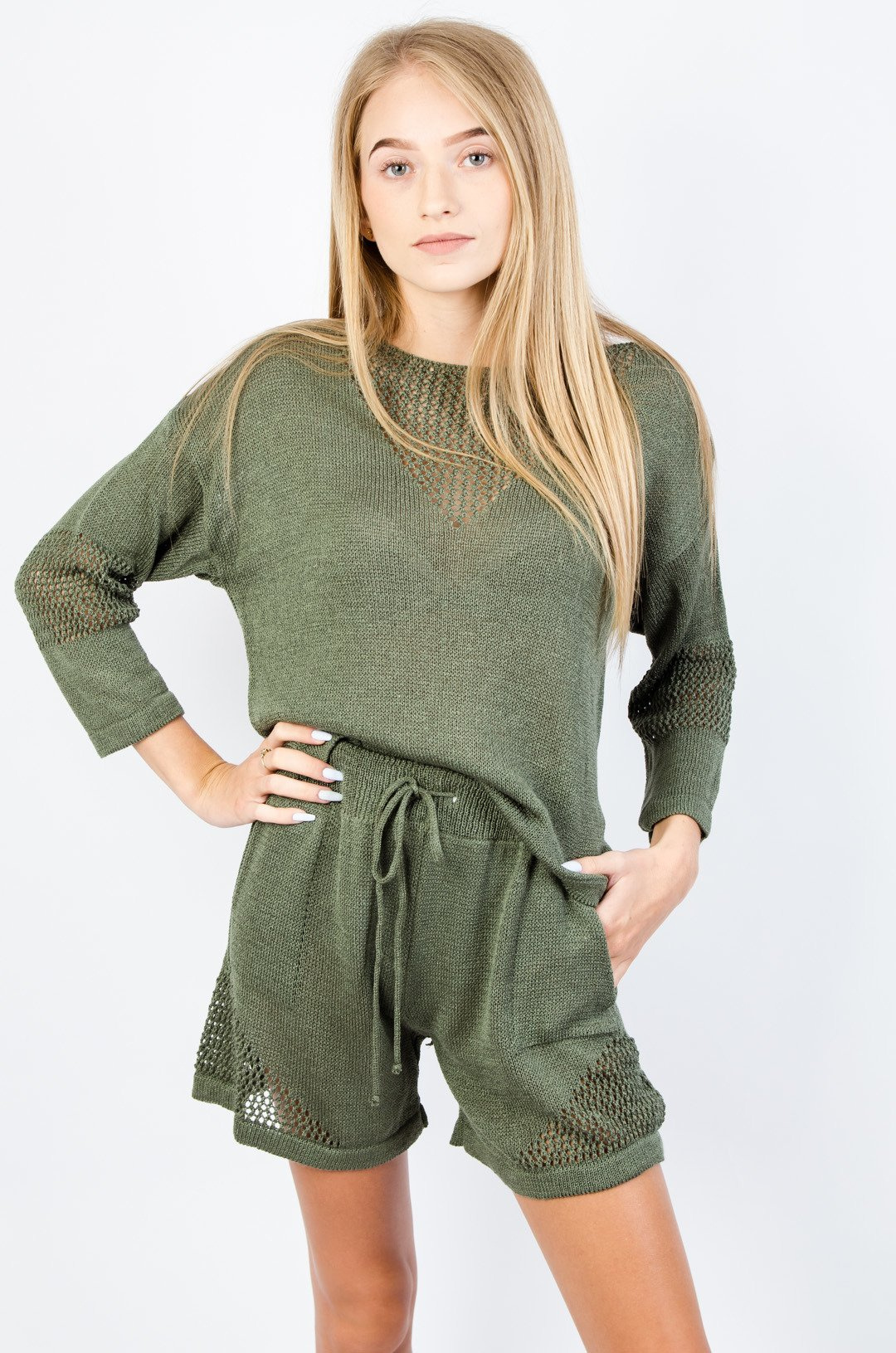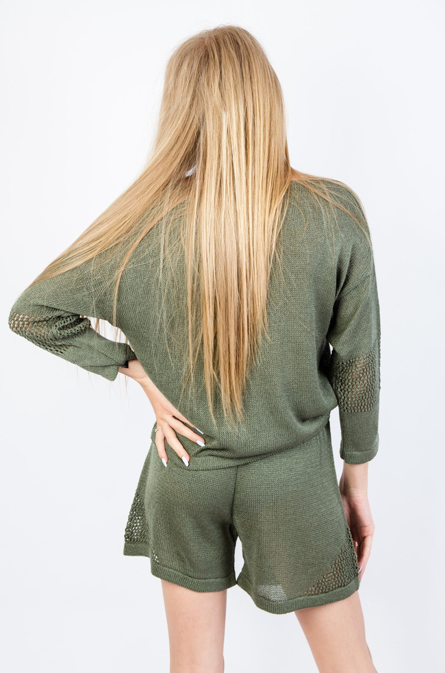 ZIELONY AKRYLOWY KOMPLET SPODENKI + BLUZKA
