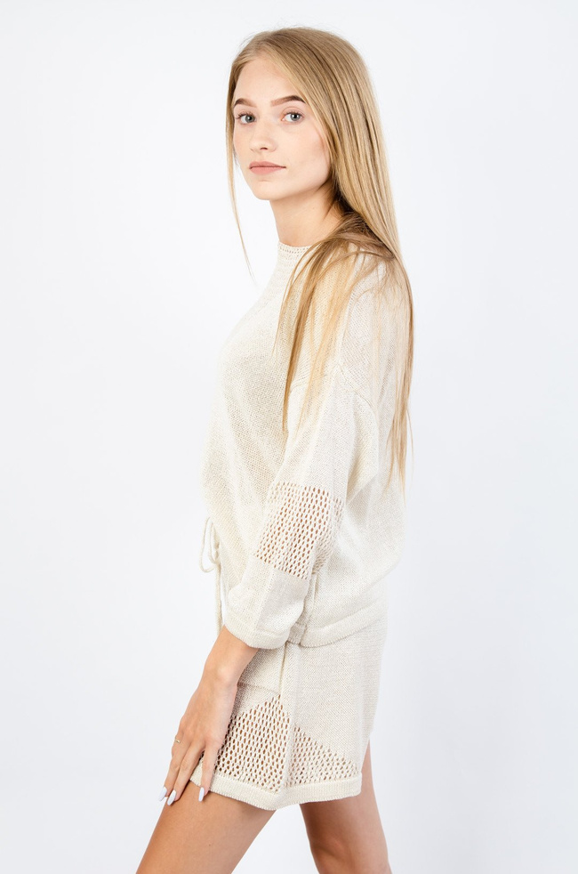 BEŻOWY AKRYLOWY KOMPLET SPODENKI + BLUZKA