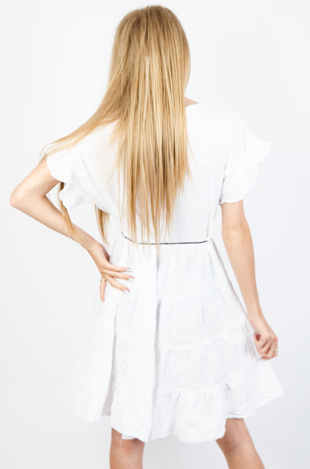BIAŁA BAWEŁNIANA AŻUROWA SUKIENKA Z HAFTEM