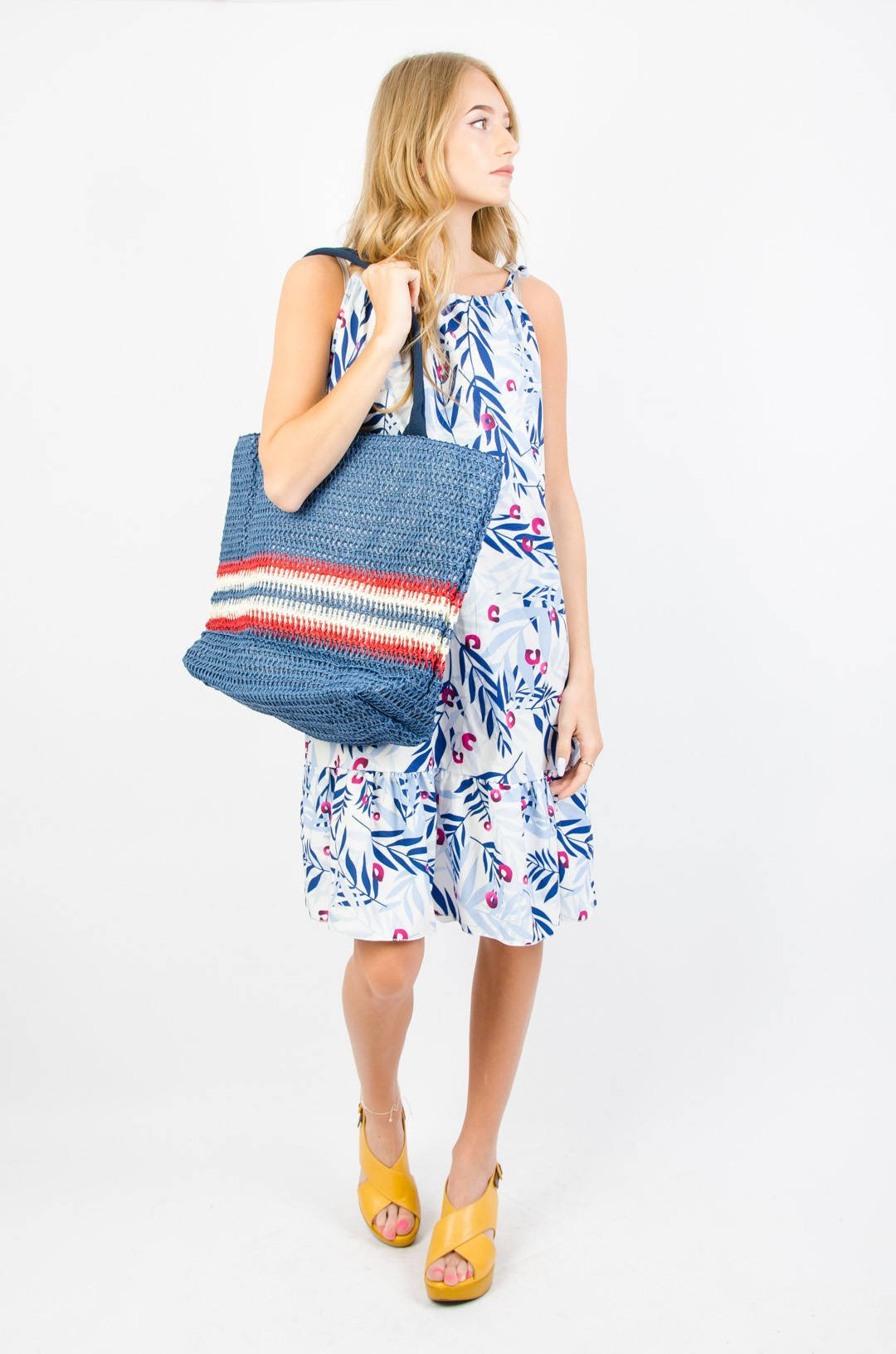 NIEBIESKA SŁOMIANA TORBA PLAŻOWA