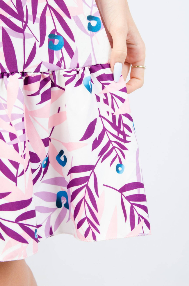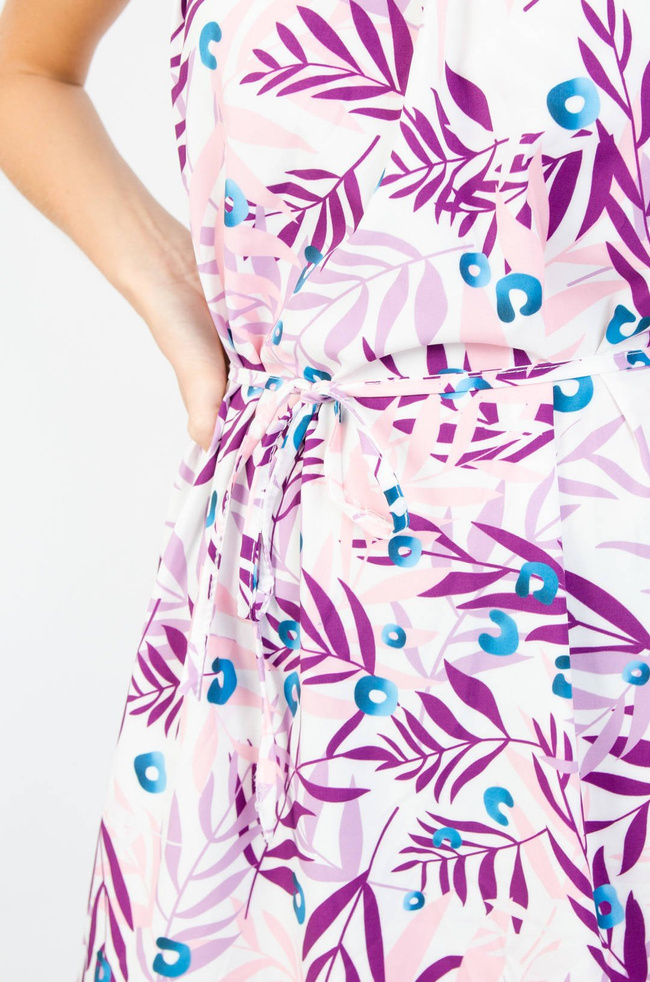 WZORZYSTA SUKIENKA WIĄZANA W PASIE - BIAŁO-RÓŻOWA