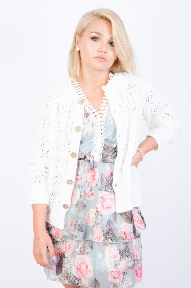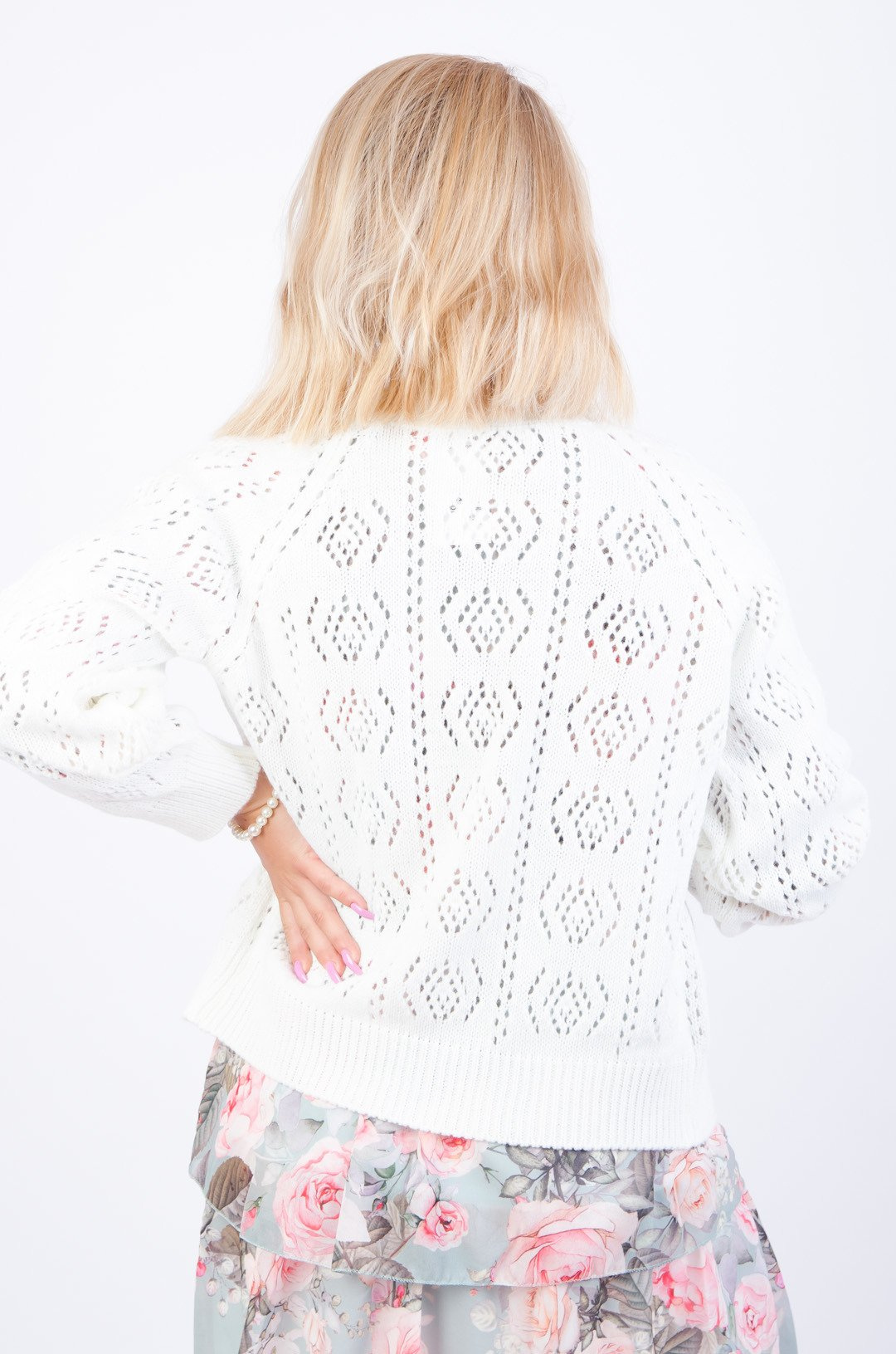 KREMOWY AŻUROWY SWETER ZAPINANY NA GUZIKI