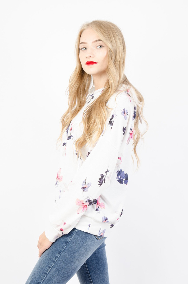 BIAŁA BLUZA Z KAPTUREM Z MOTYWEM KWIATOWYM