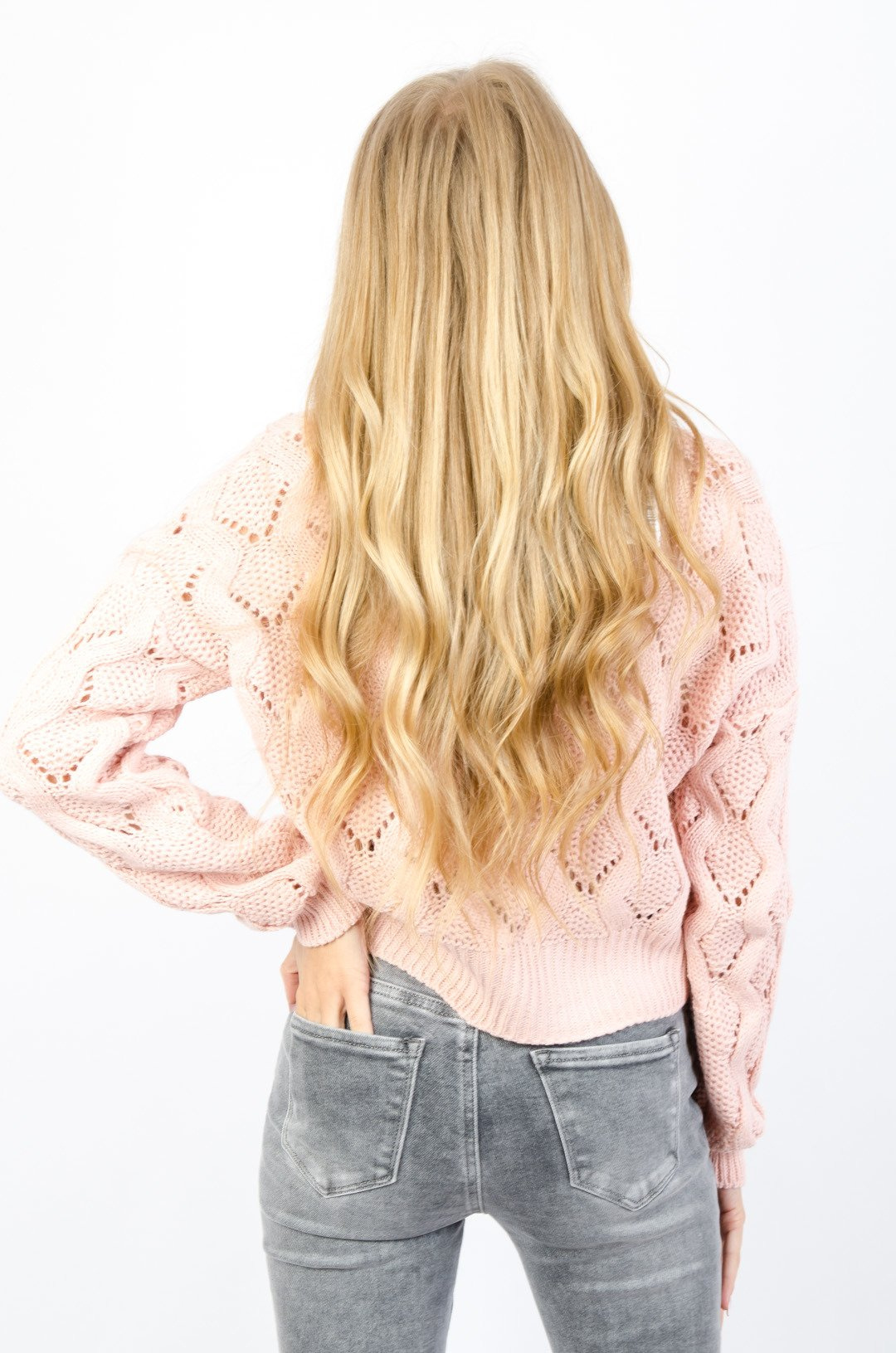 KRÓTKI RÓŻOWY SWETER Z DEKOLTEM W SEREK