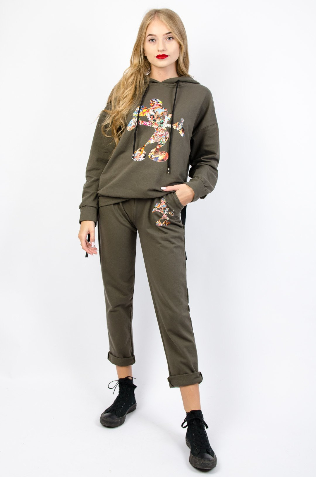 ZIELONY KOMPLET DRESOWY Z KOLOROWĄ APLIKACJĄ