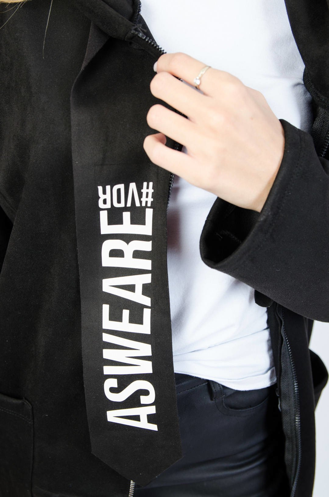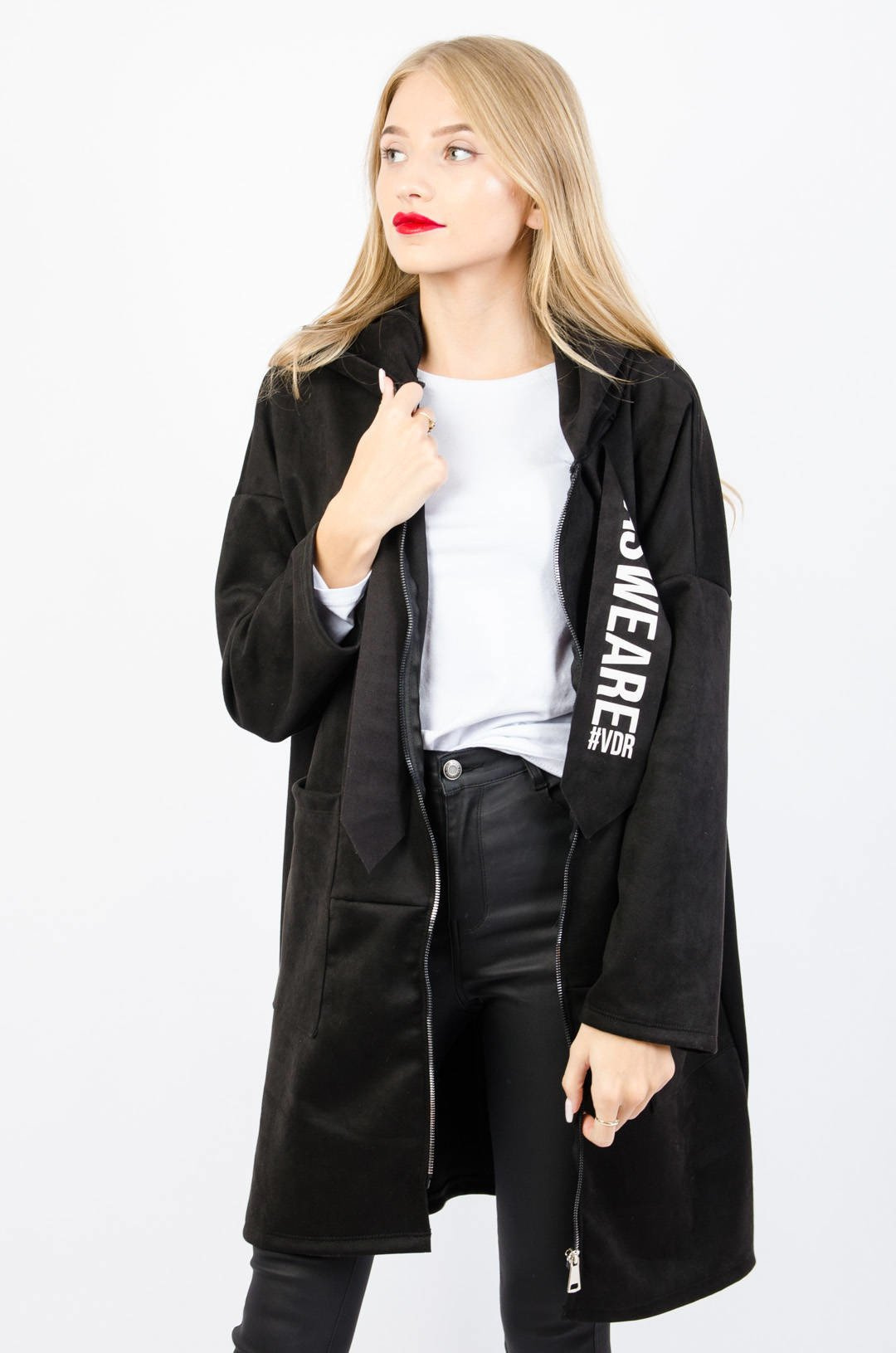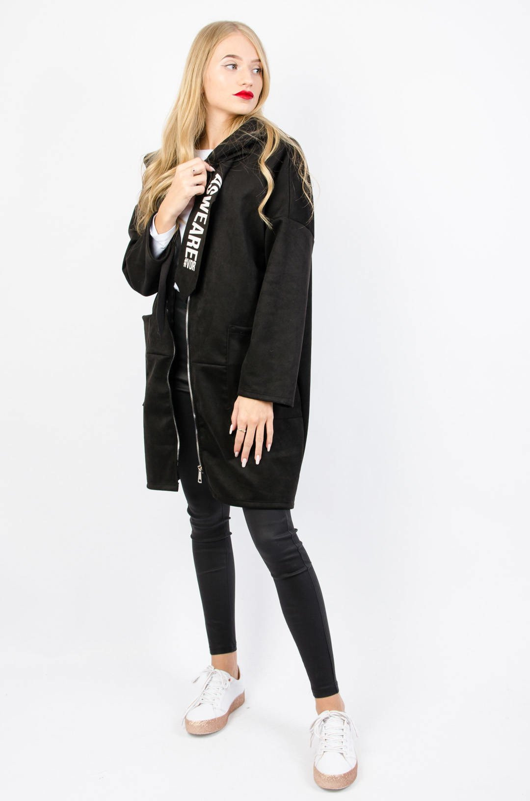 DŁUGA CZARNA NARZUTKA Z KAPTUREM