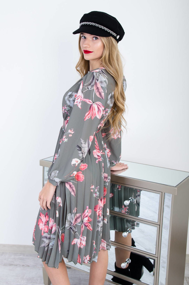 ZIELONA SUKIENKA W KWIATY Z PLISOWANYM DOŁEM