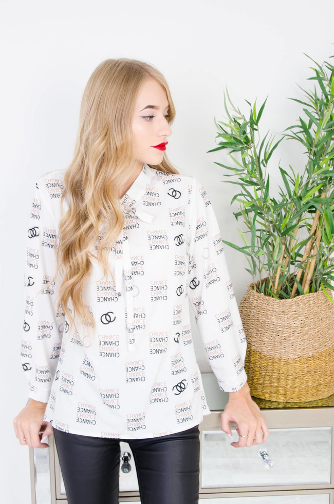 BIAŁA WZORZYSTA BLUZKA Z KOŁNIERZEM
