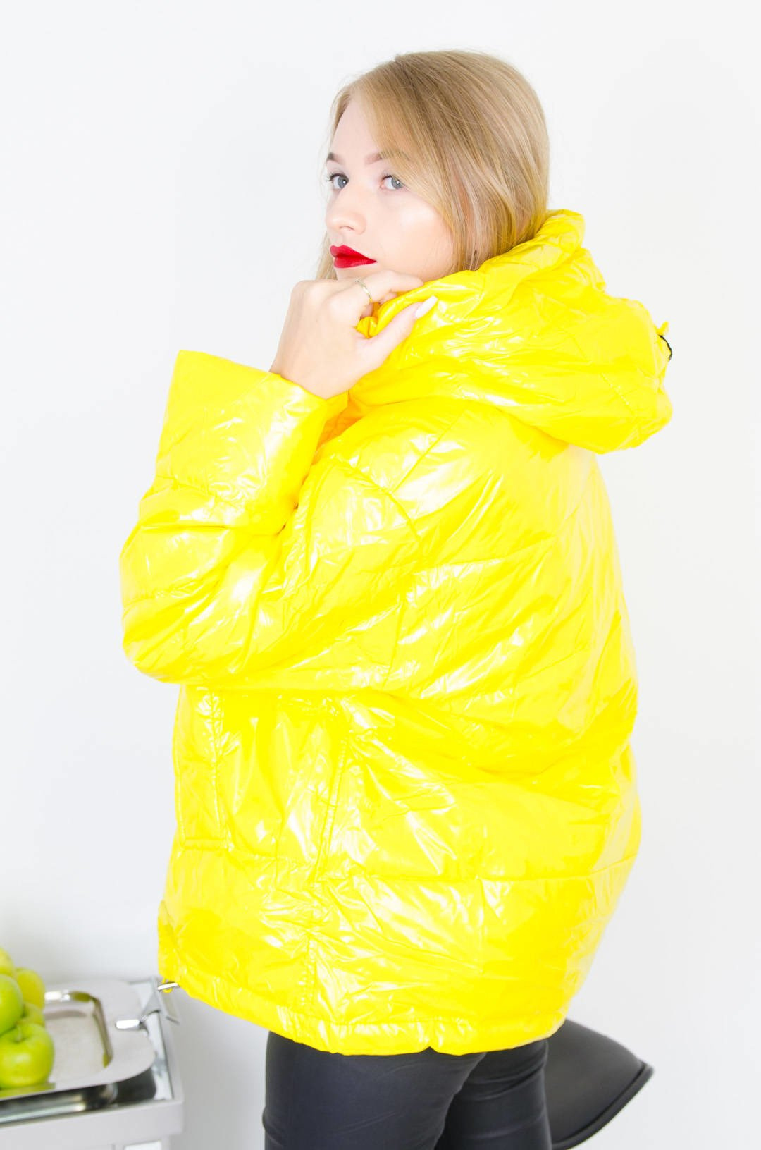 ŻÓŁTA WINYLOWA KURTKA Z KAPTUREM OVERSIZE