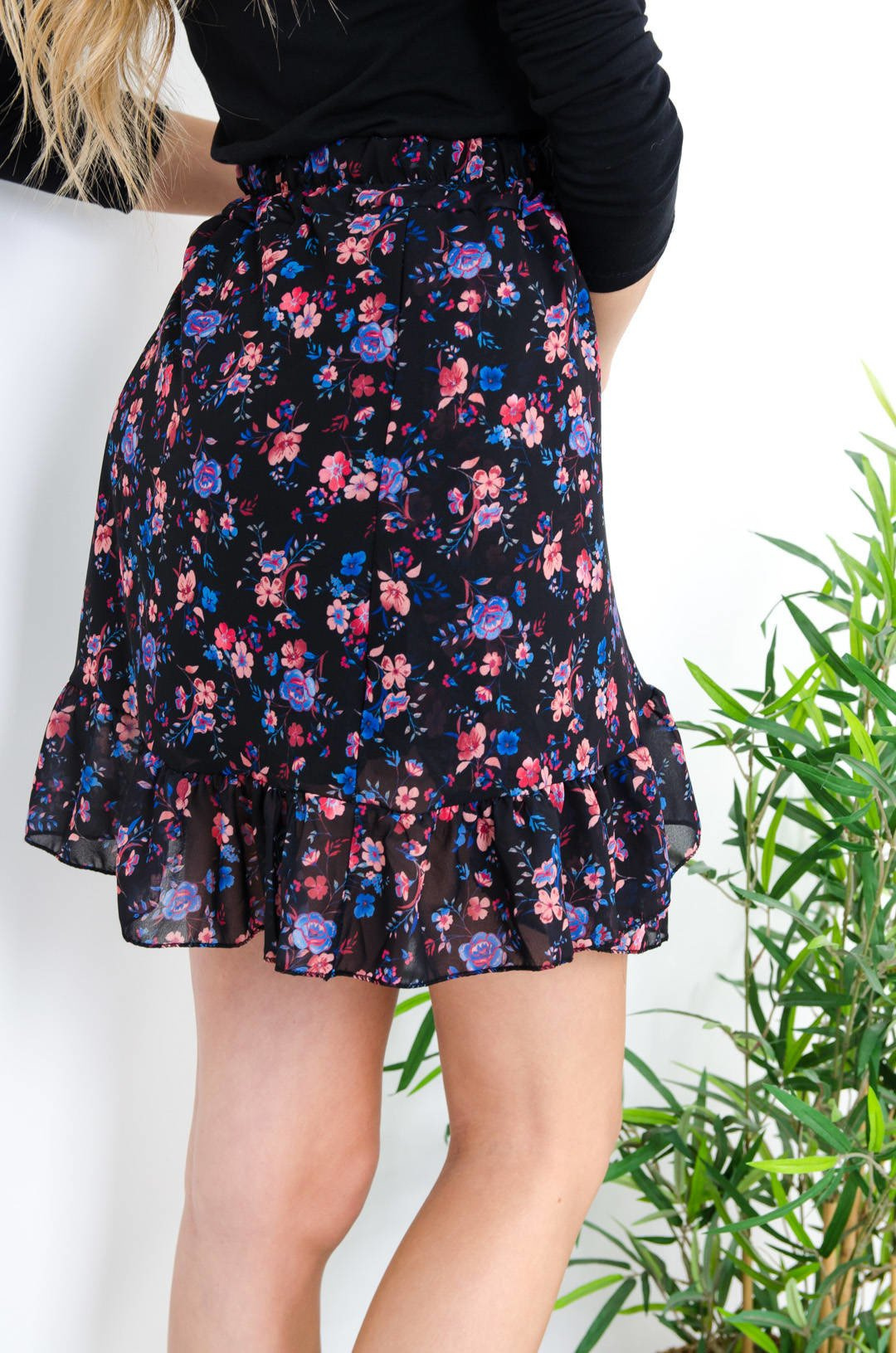 CZARNA SPÓDNICA W KWIATY Z ZAKŁADKĄ ORAZ WIĄZANIEM