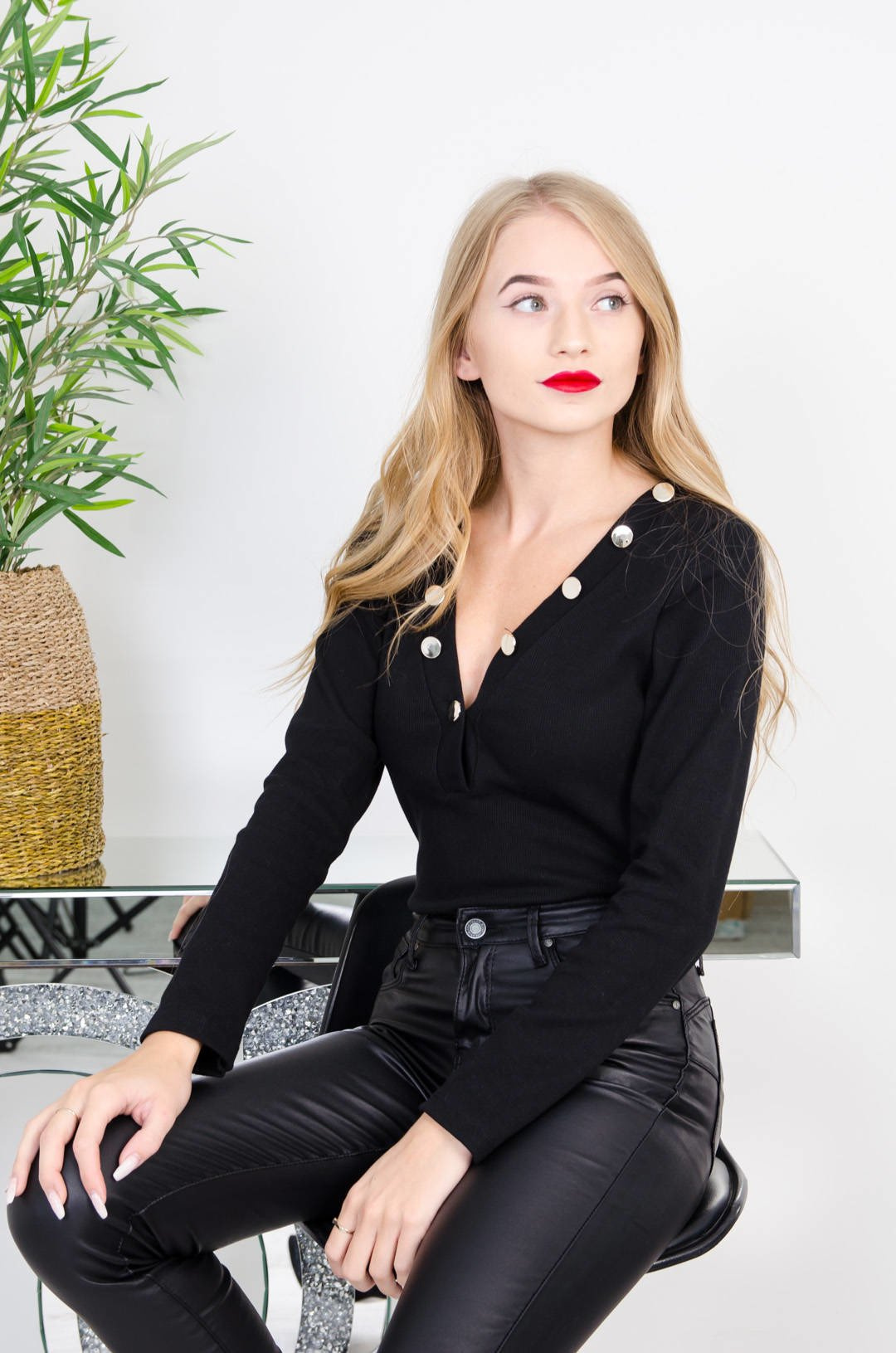 CZARNE PRĄŻKOWANE BODY ZE ZŁOTYMI GUZIKAMI