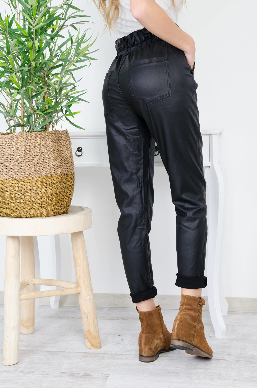 CZARNE SPODNIE WOSKOWANE Z WYSOKIM STANEM