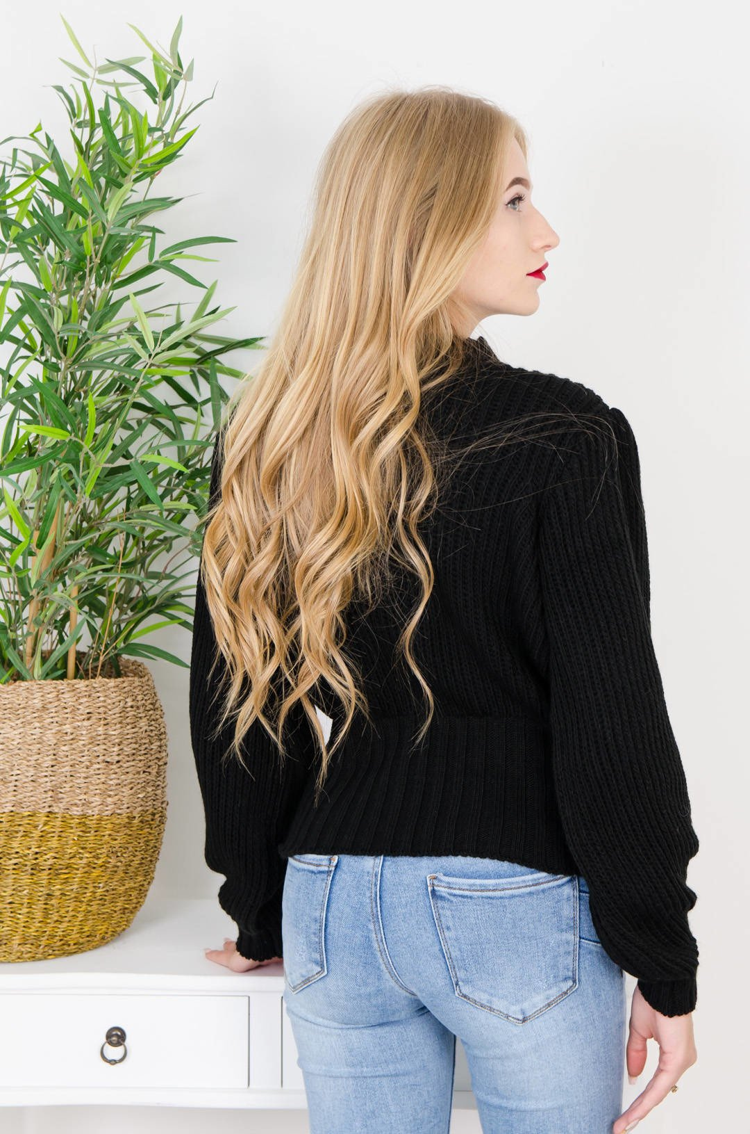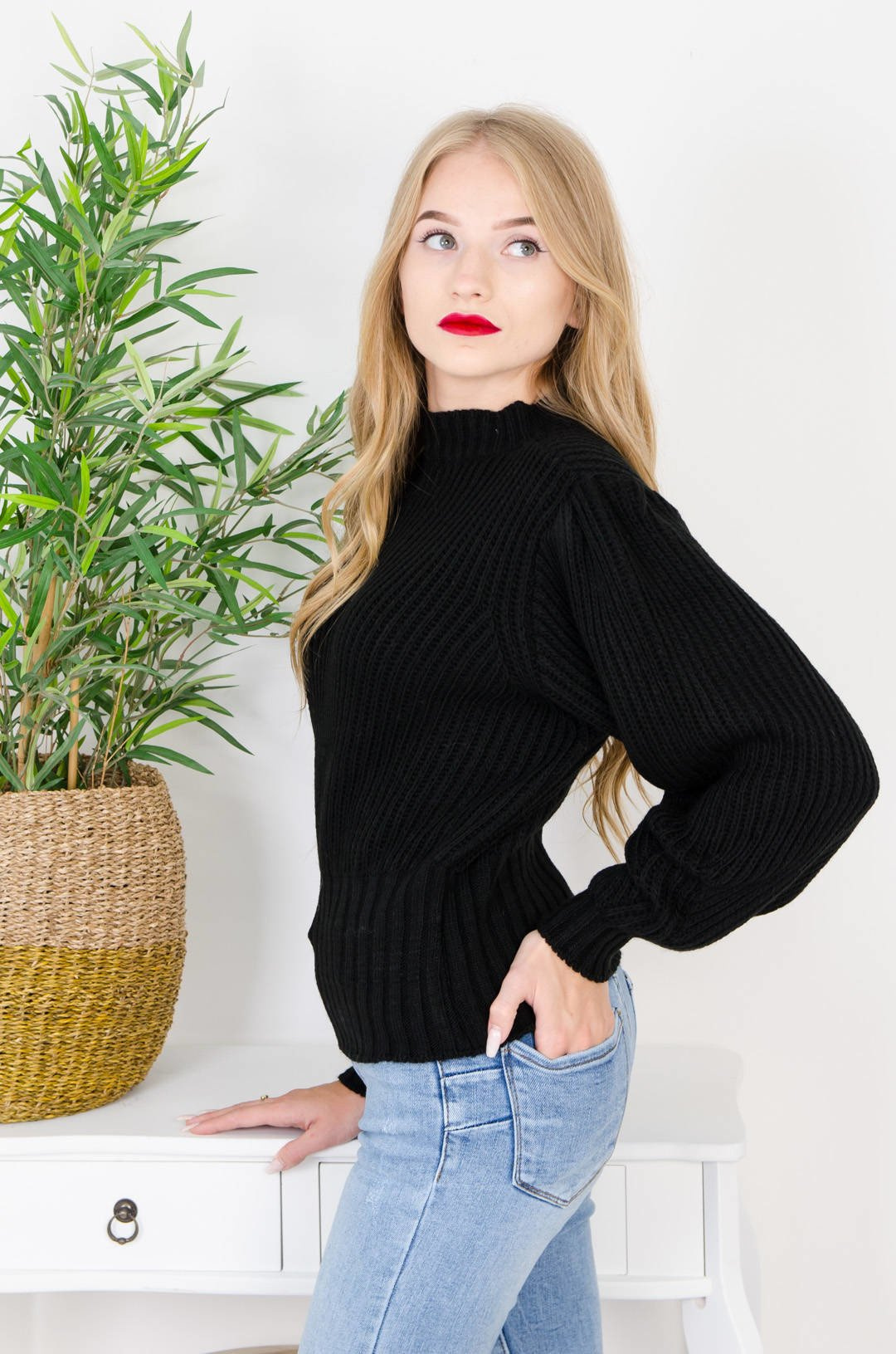 CZARNY SWETER Z BUFIASTYMI RĘKAWAMI